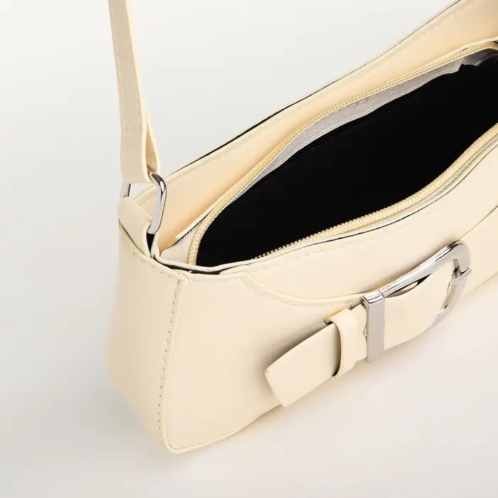 Сумка женская багет на молнии, 26×5×10.5 см, молочная