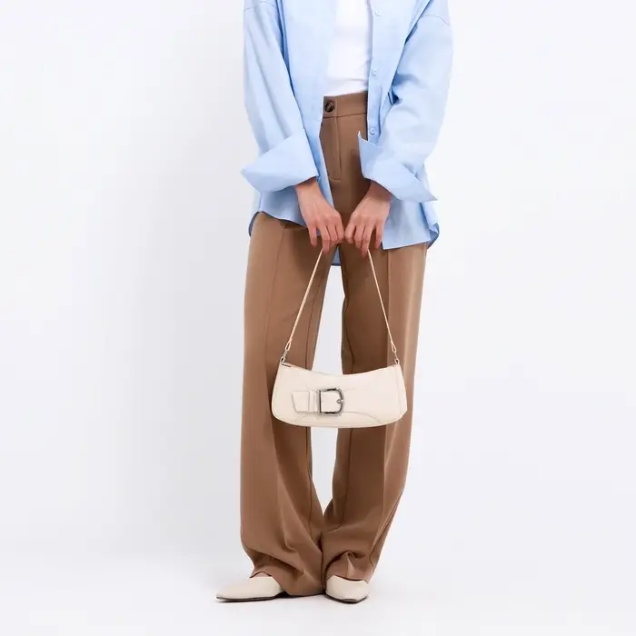 Сумка женская багет TEXTURA на молнии, 24×6.5×13 см, молочная