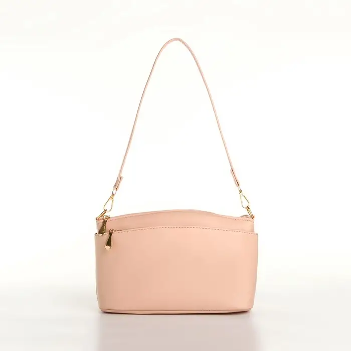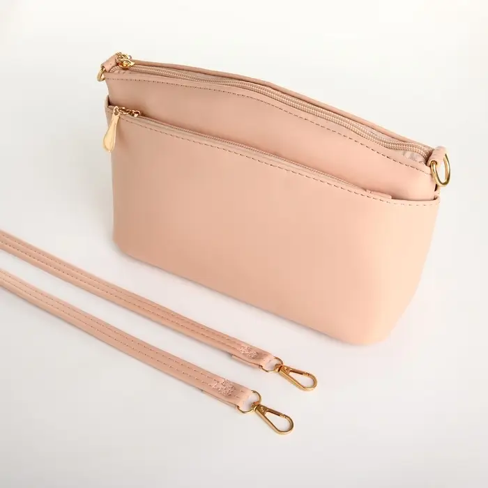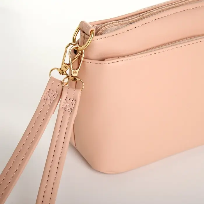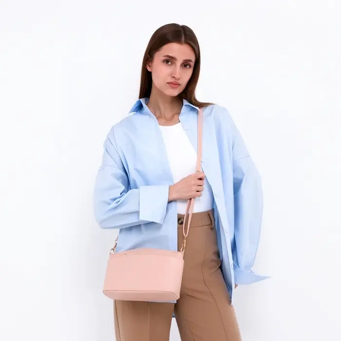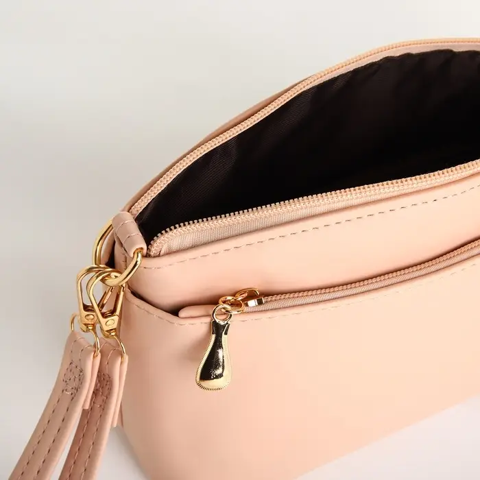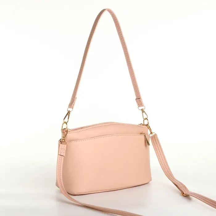 Сумка женская кросс-боди на молнии, 23×9×15 см, пудровая
