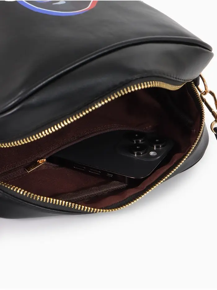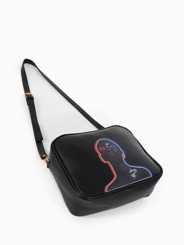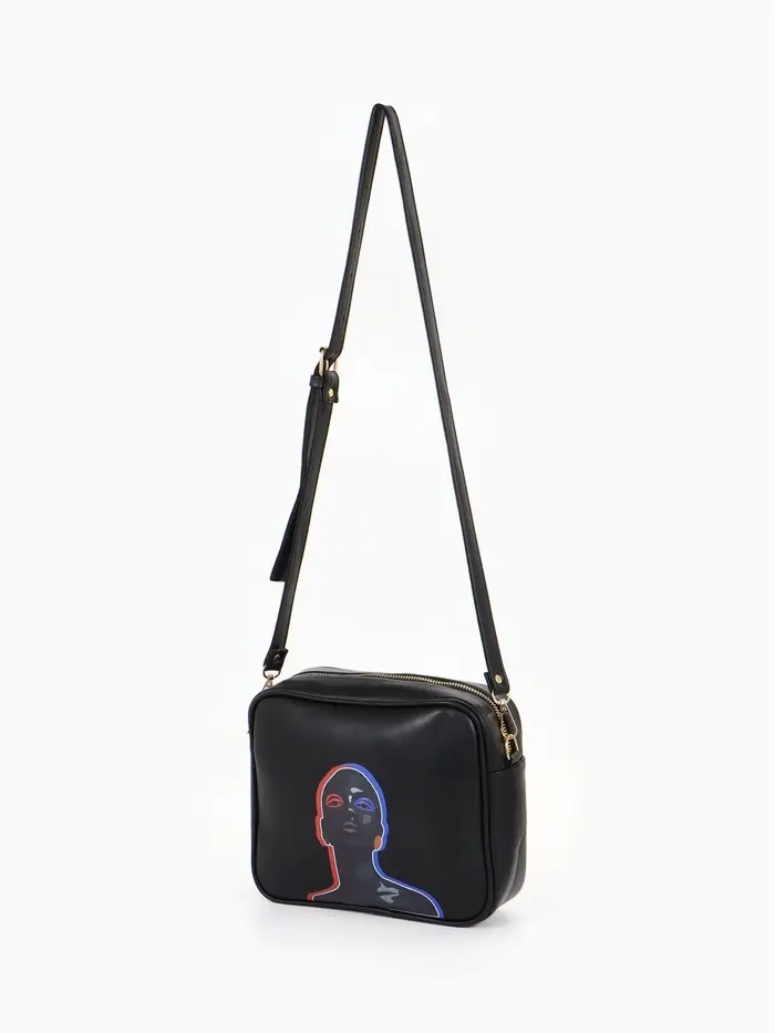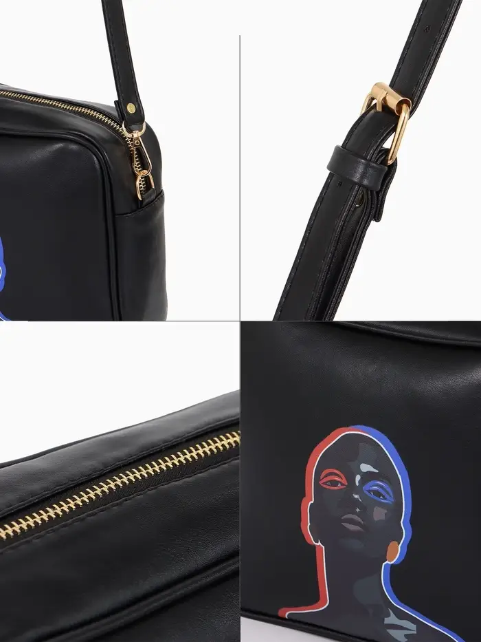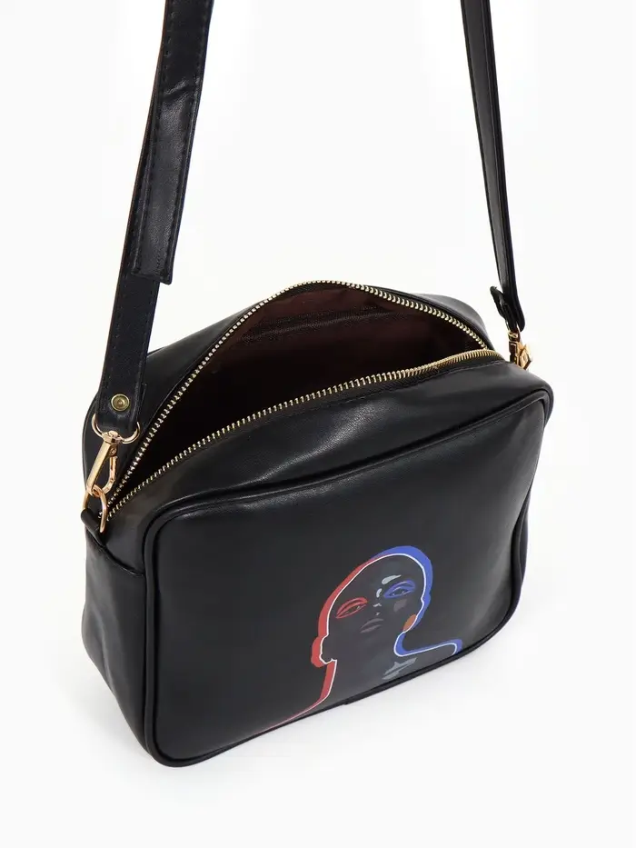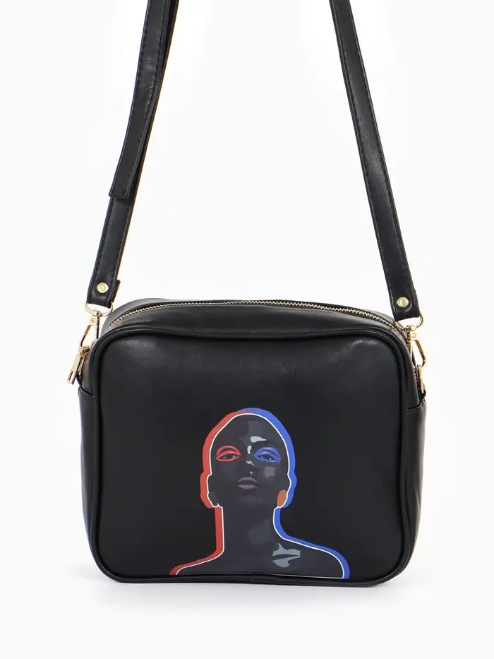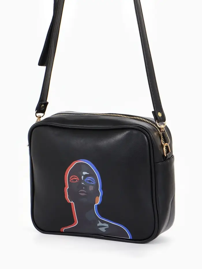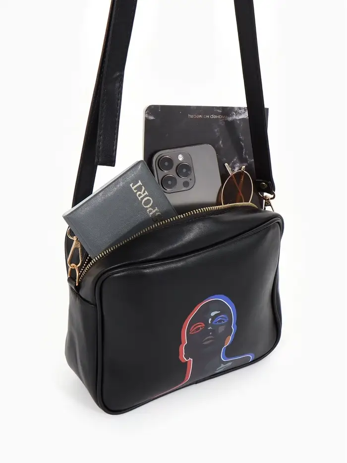 Сумка женская на молнии TEXTURA, 22×8×17 см, с цветным принтом, чёрная