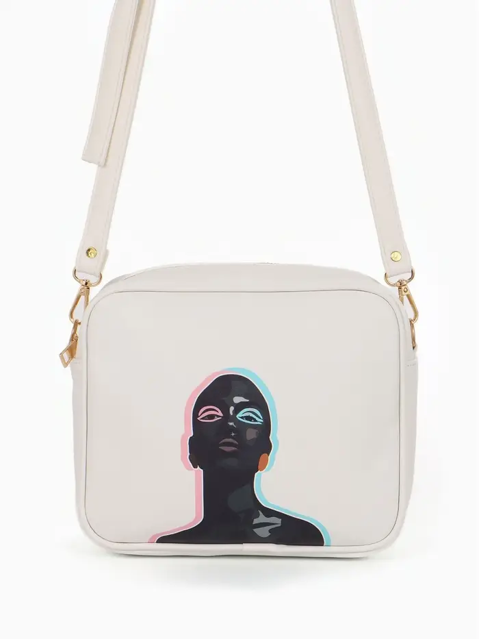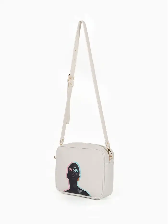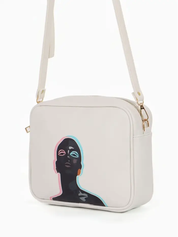 Сумка женская кросс-боди на молнии, 22×11×15 см, с принтом, бежевая