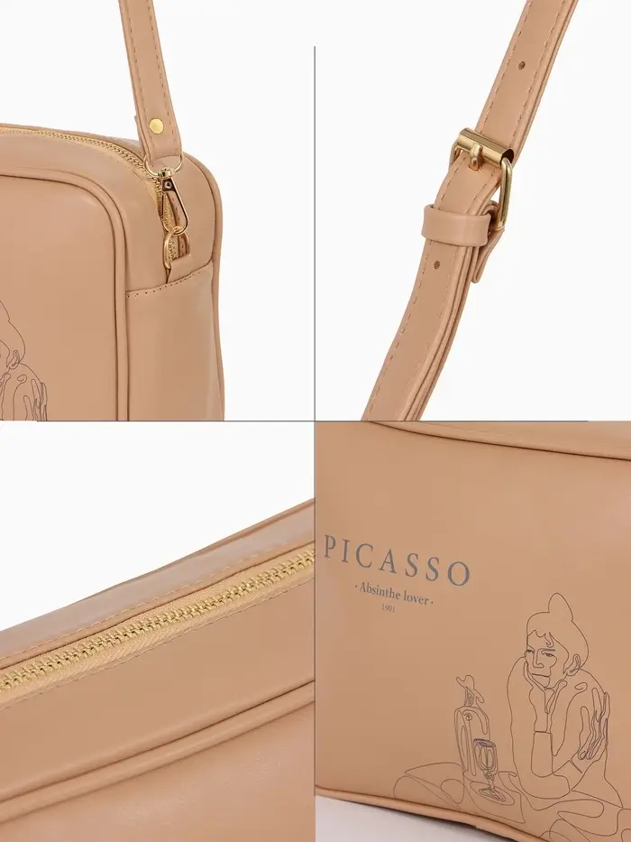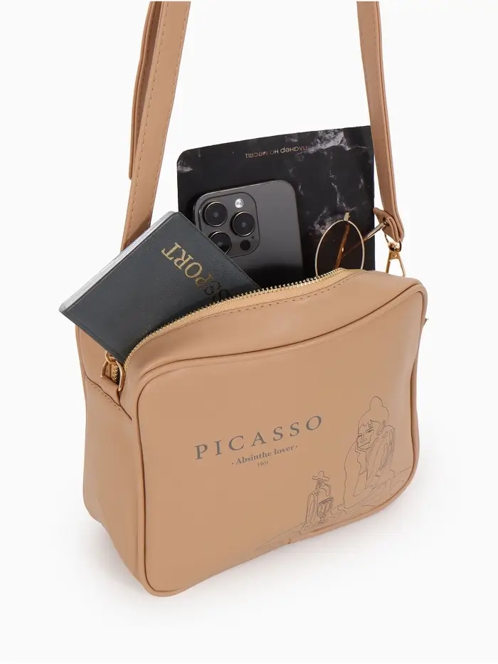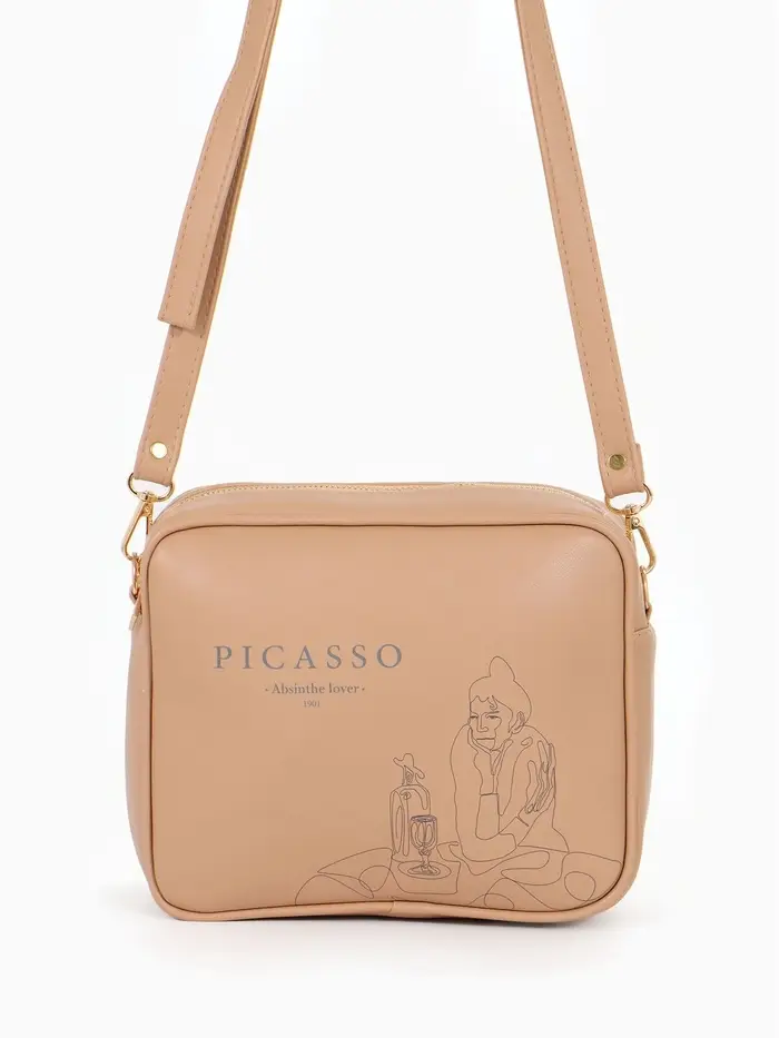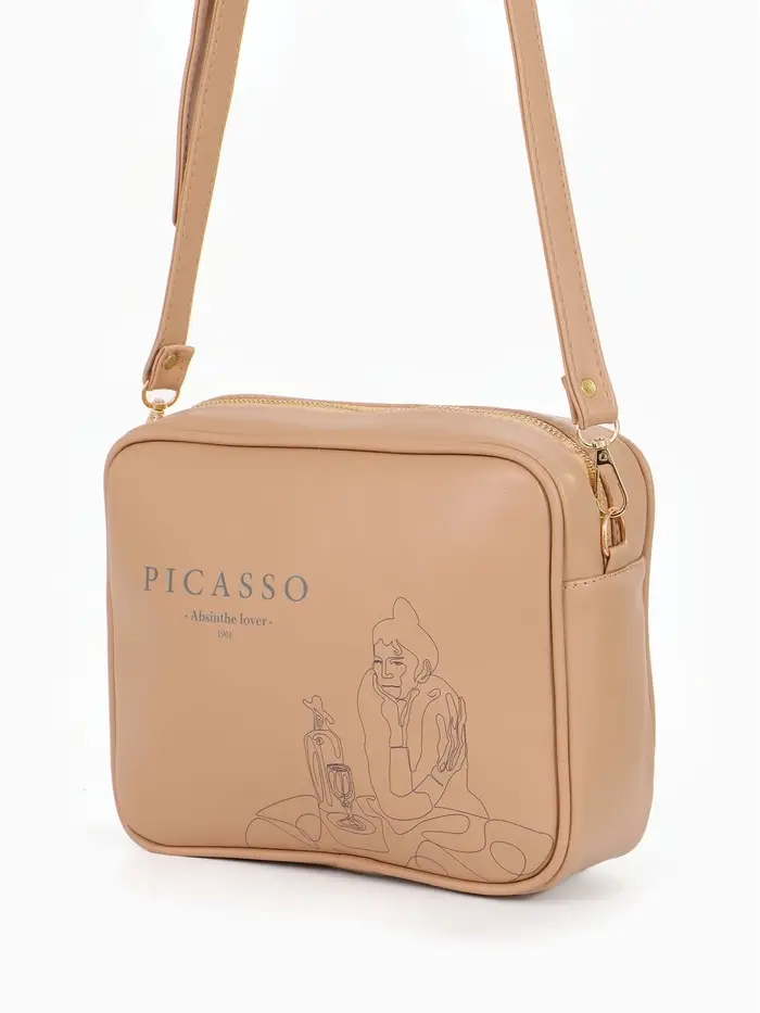Сумка женская кросс-боди на молнии, 22×11×15 см, с принтом, бежевая