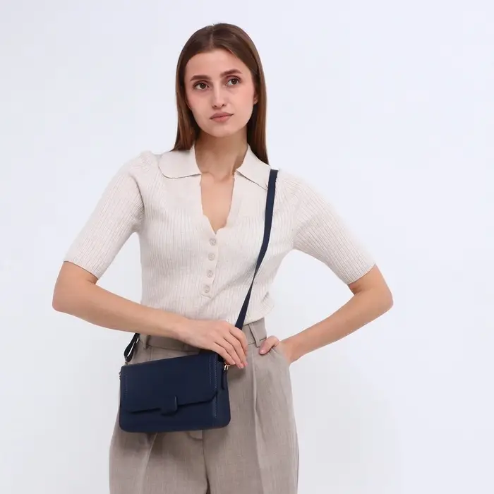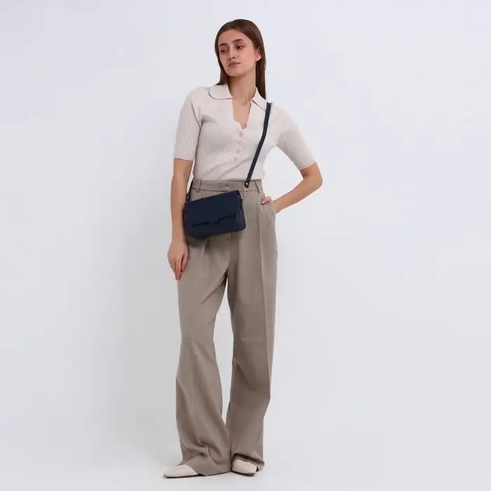Сумка женская мессенджер TEXTURA на клапане, 17×10×18 см, синяя