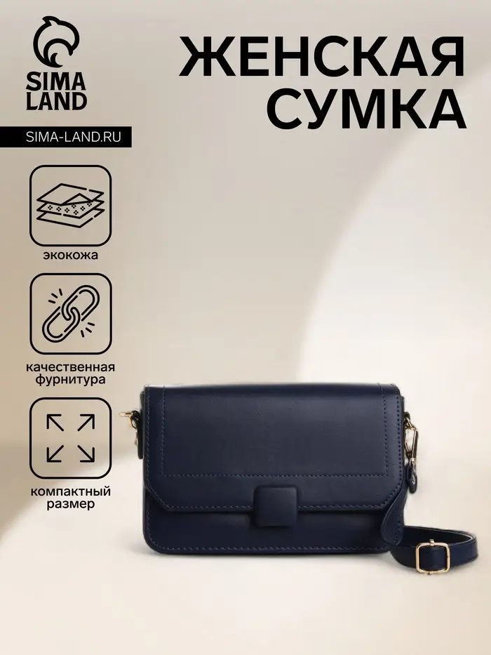 Сумка женская мессенджер на магните, 20×7×12 см, синяя