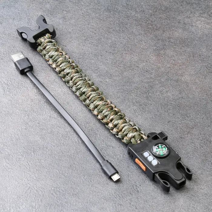 Браслет для выживания 4 в 1 (паракорд - 3 м, компас, свисток, фонарь), цвет камуфляж