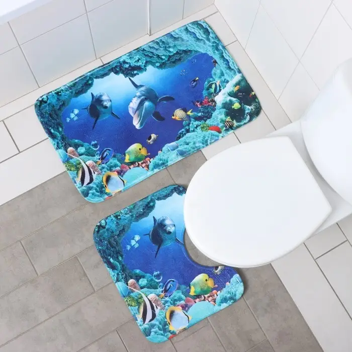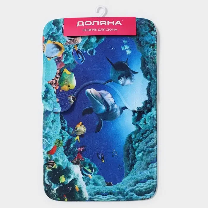 Коврики для ванны и туалета Доляна «Морской мир», 2 шт., 40×50, 50×80 см