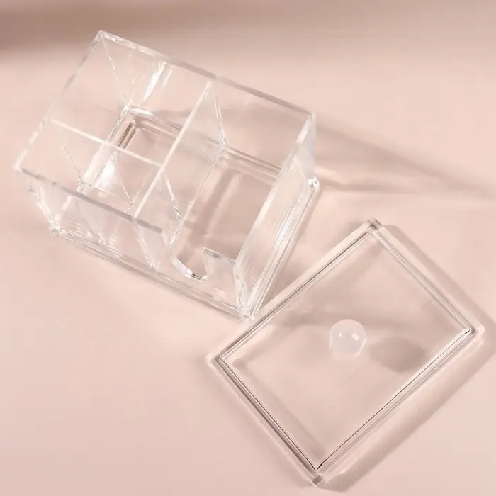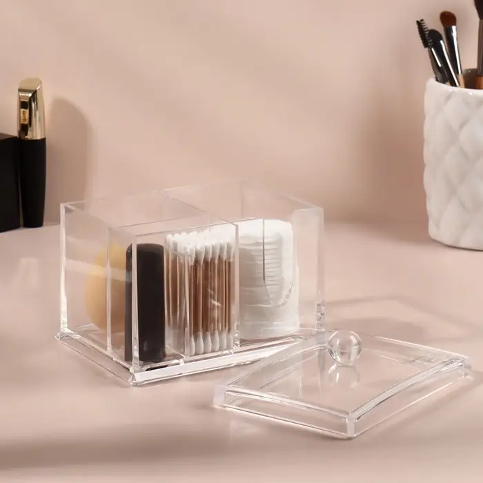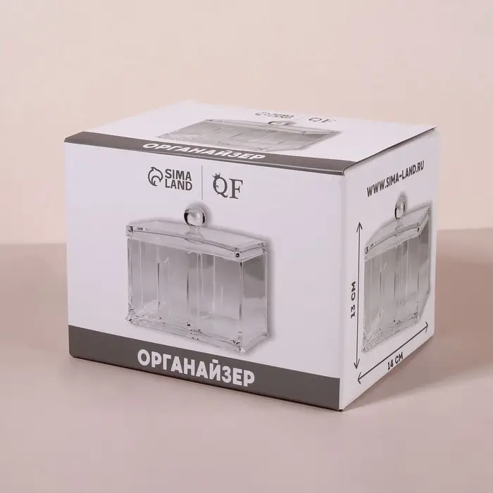 Органайзер для ватных палочек и дисков, 4 секции, 13×14×11 см, прозрачный