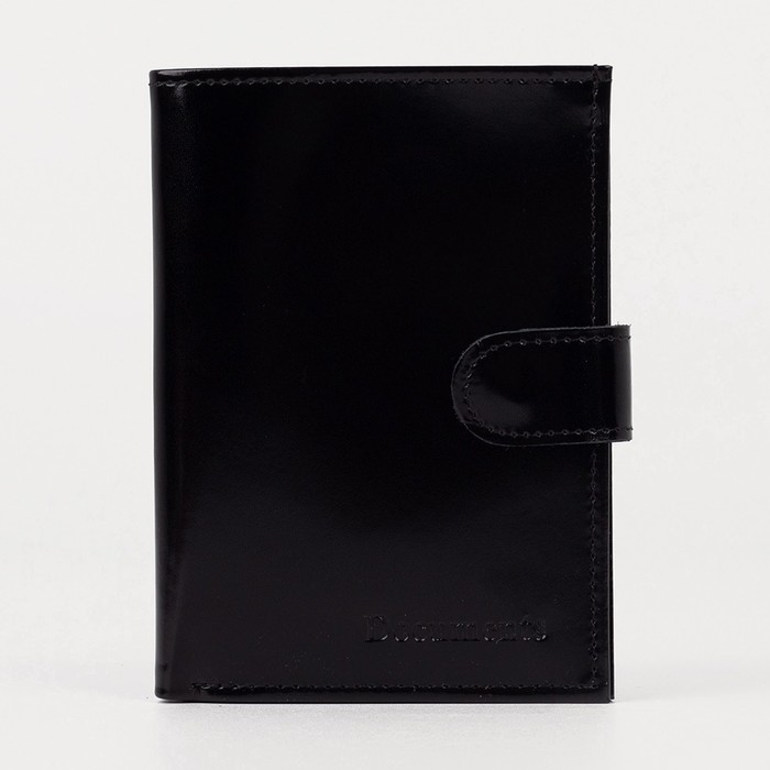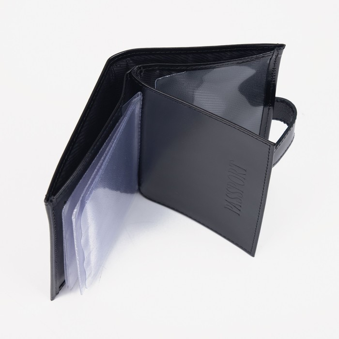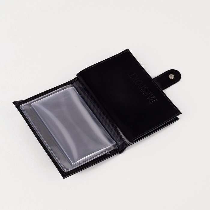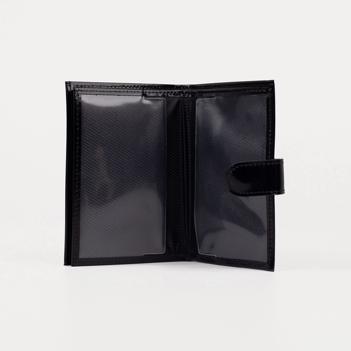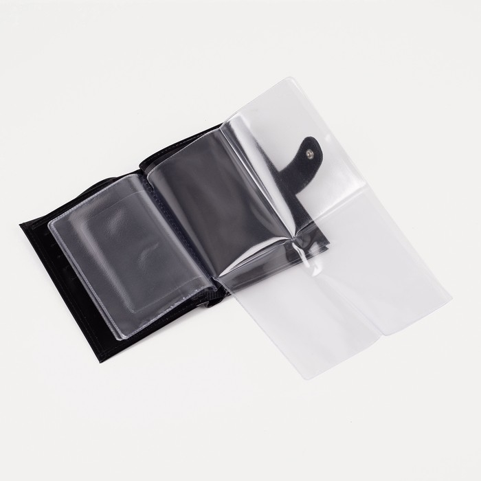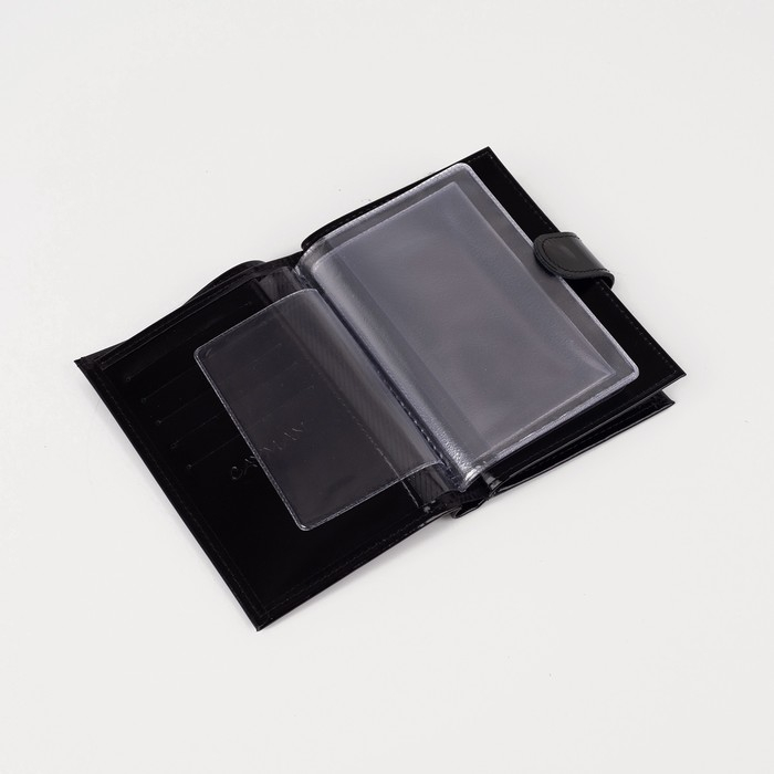 Обложка для автодокументов и паспорта на кнопке, отдел для купюр, 5 карманов для карт, цвет чёрный