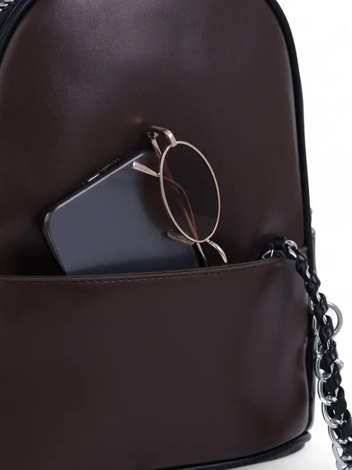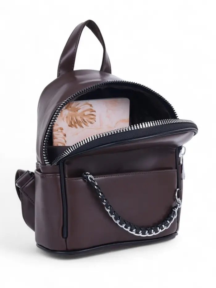 Этот коричневый мини-рюкзак предлагает практичное решение для повседневного использования. Модель компактного размера удобно располагается на спине, оставляя руки свободными. Мягкая спинка и две лямки обеспечивают комфорт при переноске вещей в течение дня.
