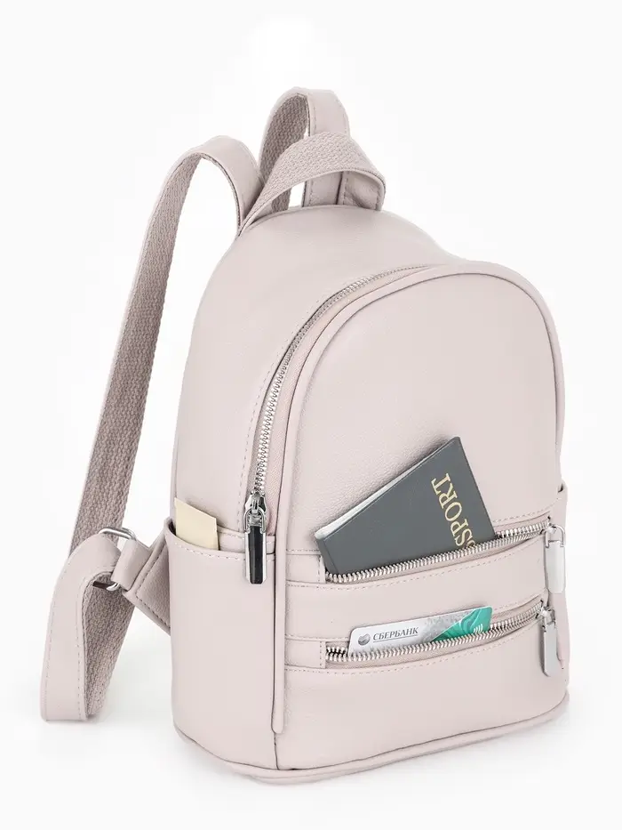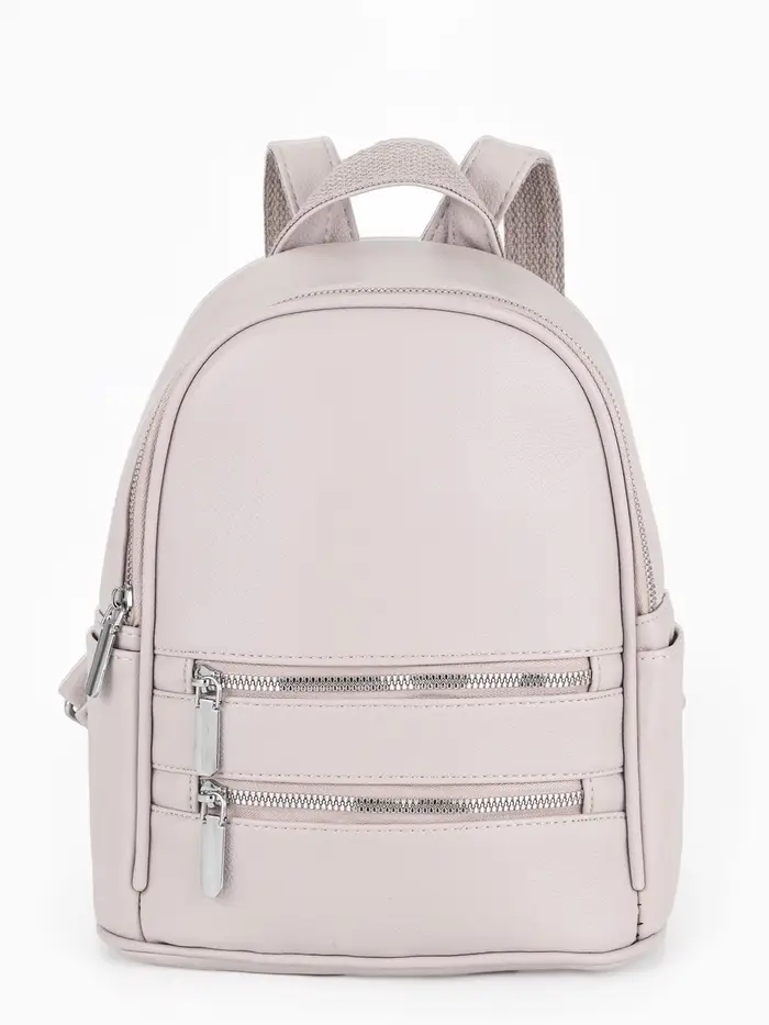 Рюкзак-мини женский на молнии, с карманом, размер 22×12×25 см, бежевый