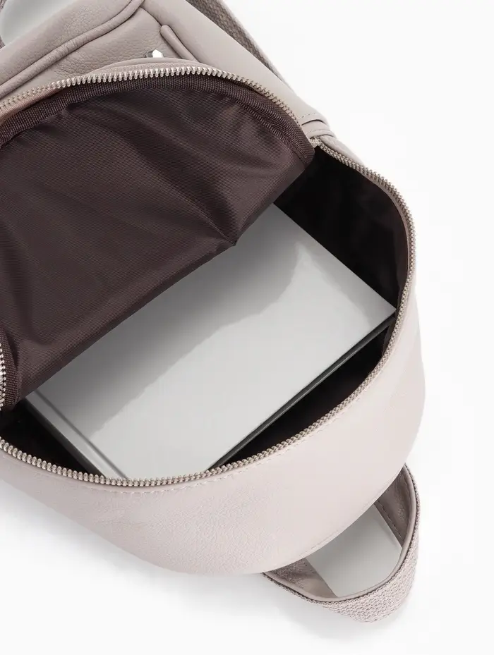 Этот компактный женский рюкзак в светлом оттенке — идеальный спутник для повседневной жизни. Лёгкий, но вместительный, он легко поместит всё необходимое: от документов до косметички. Две регулируемые лямки и мягкая спинка делают носку комфортной даже при долгих прогулках.