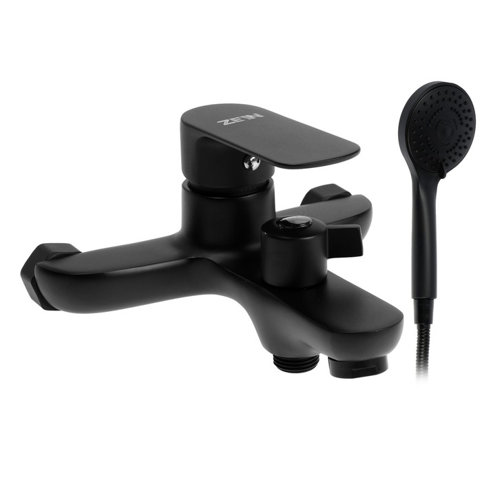 Смеситель для ванны ZEIN Z3852, однорычажный, душевой набор, лейка 5 режимов, черный