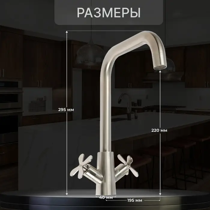 Смеситель имеет высокий изогнутый излив, который обеспечивает удобство при наполнении и промывке кастрюль, кувшинов и другой крупногабаритной посуды.
