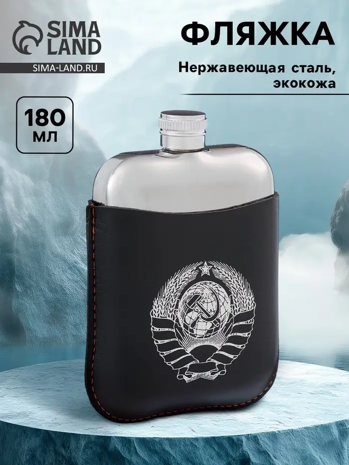Фляжка «Герб СССР», нержавеющая сталь, чехол, 180 мл, 6 oz