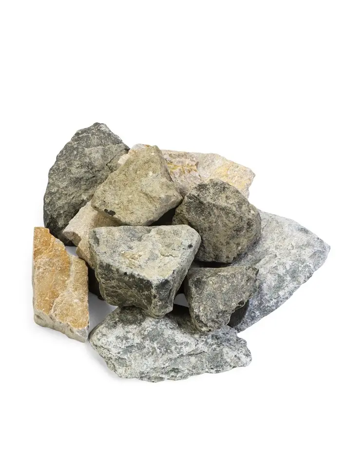 Камни для бани «Микс» 30 кг, колотые — готовый набор отборных пород для каменки. Комбинация талькохлорита, кварцита и дунита создаёт устойчивую теплоотдачу, долгий лёгкий пар и крепкое здоровье парной.