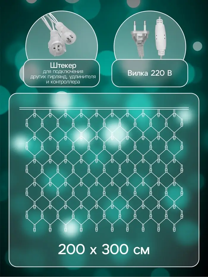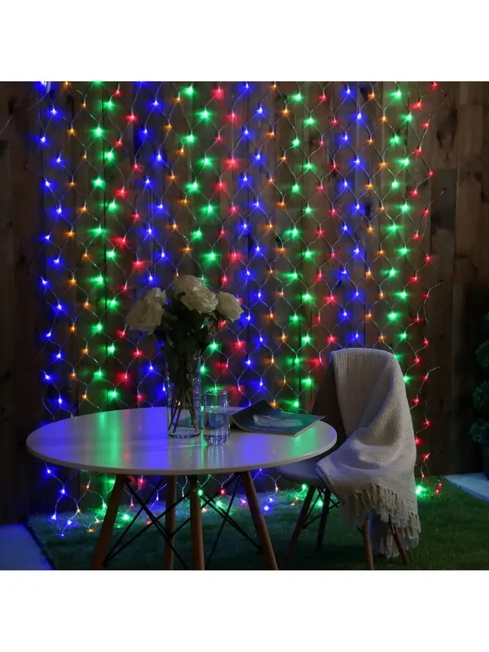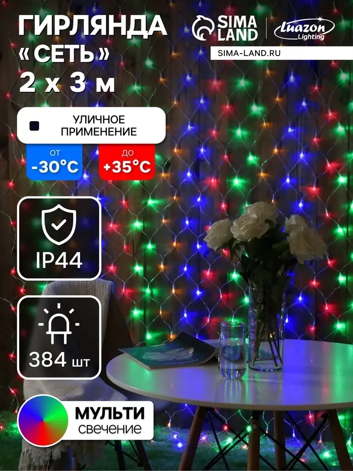Гирлянда «Сеть» 2×3 м, IP44, УМС, прозрачная нить, 384 LED, свечение мульти, 220 В