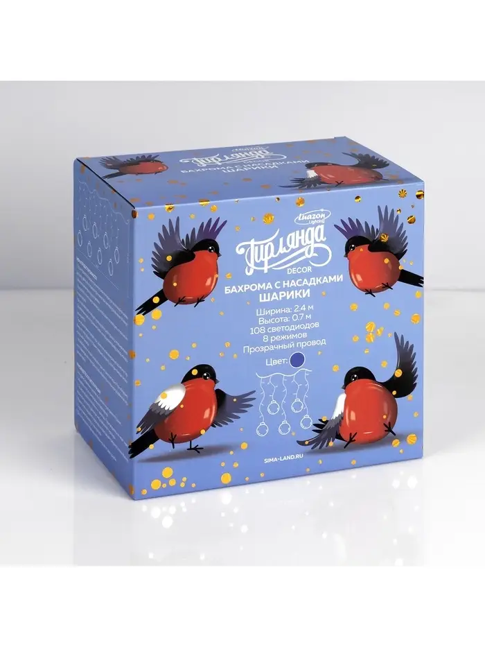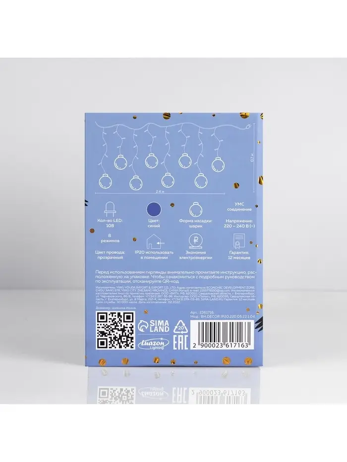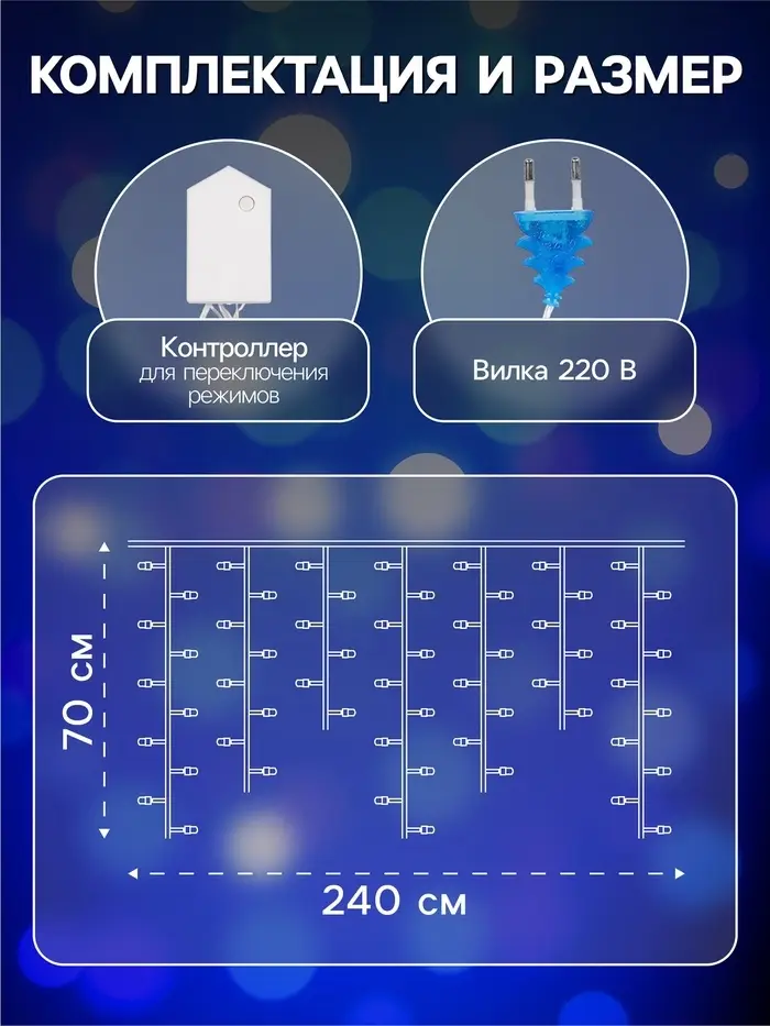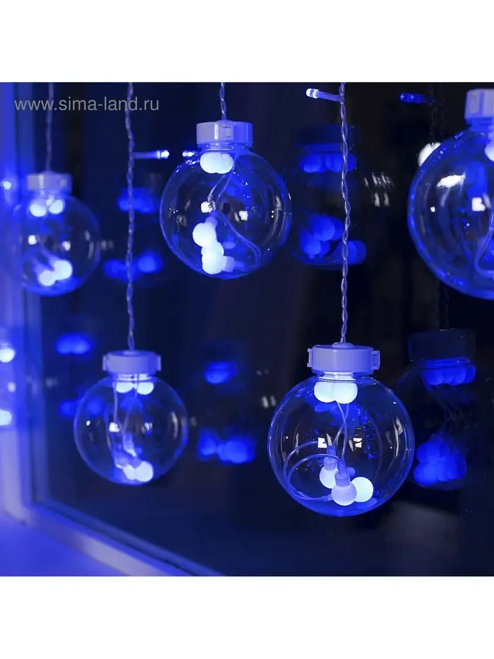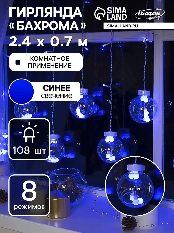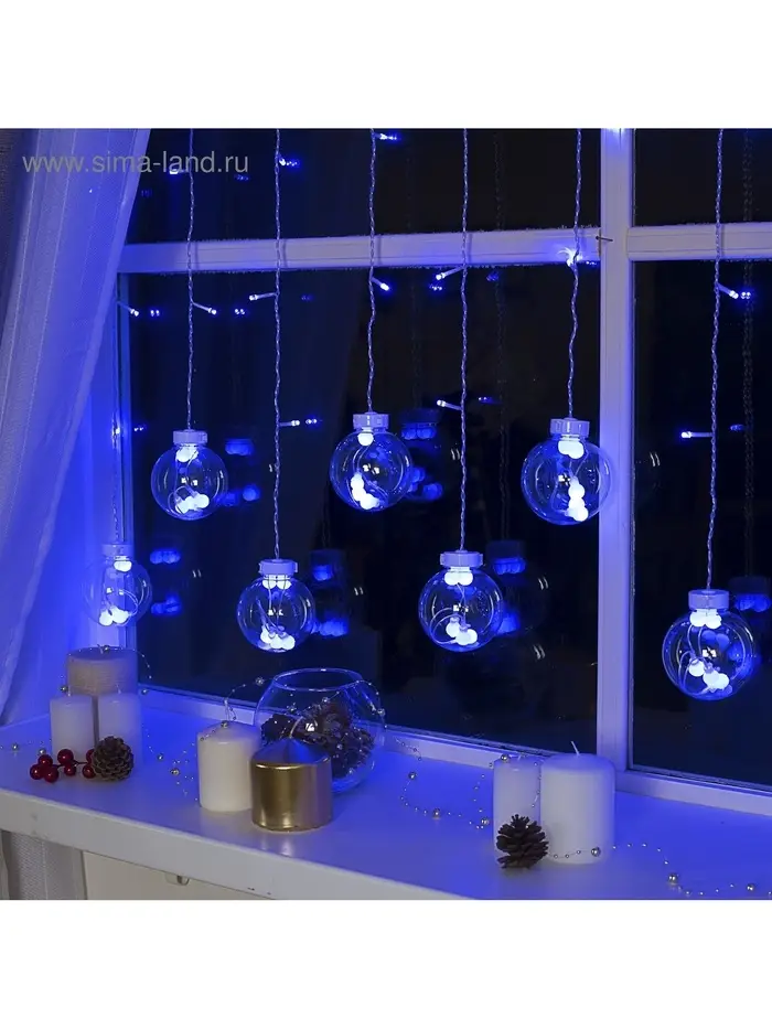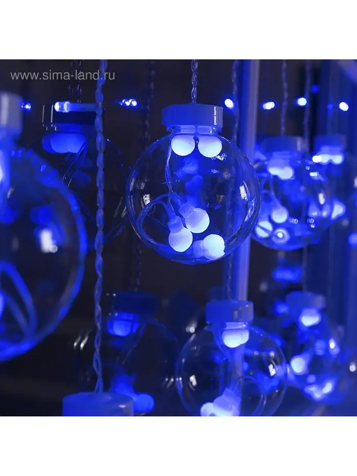Гирлянда «Бахрома» 2.4×0.7 м с насадками «Шарики», IP20, прозрачная нить, 108 LED, свечение синее, 8 режимов, 220 В