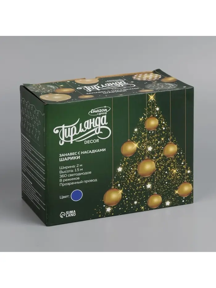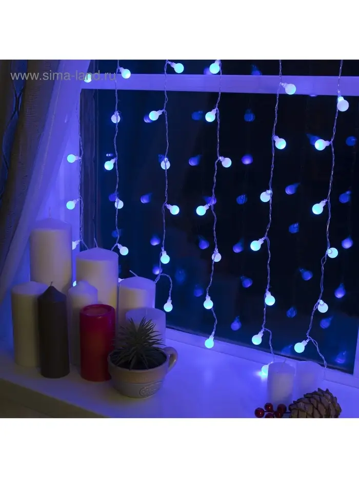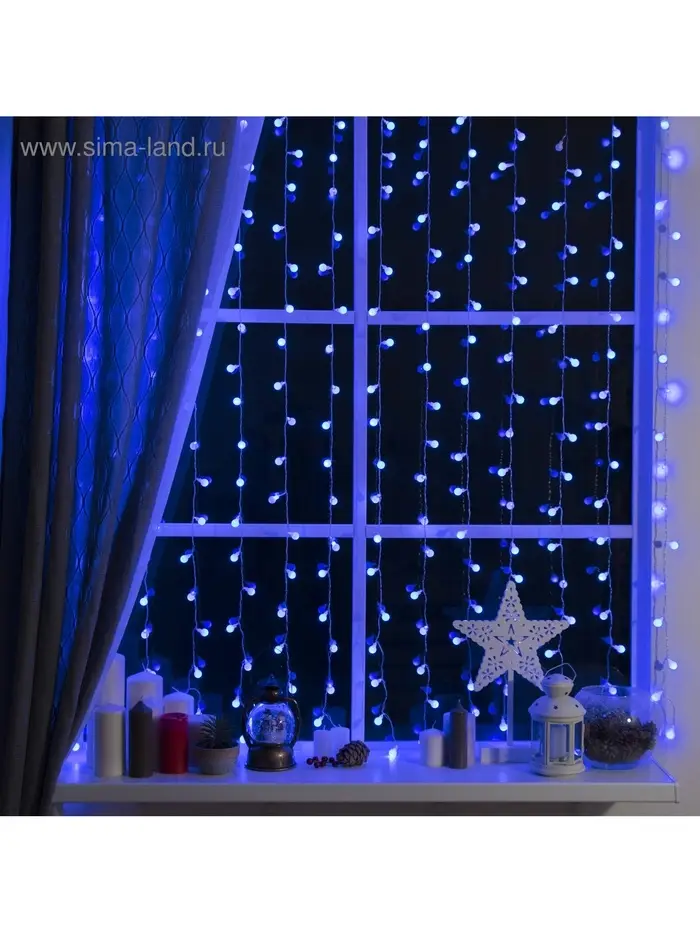Гирлянда «Занавес» 2×1.5 м с насадками «Шарики», IP20, прозрачная нить, 360 LED, свечение синее, 8 режимов, 220 В