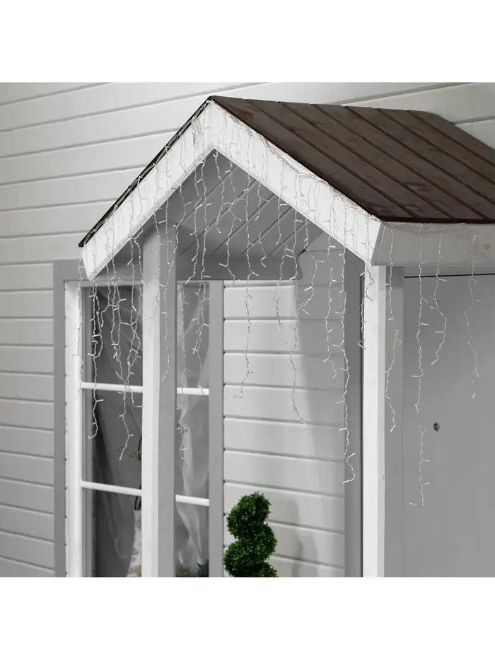Гирлянда «Сосульки рифленые» 2.5×0.3 м, IP65, прозрачная нить, 192 LED, свечение белое с эффектом стекания, 12 В