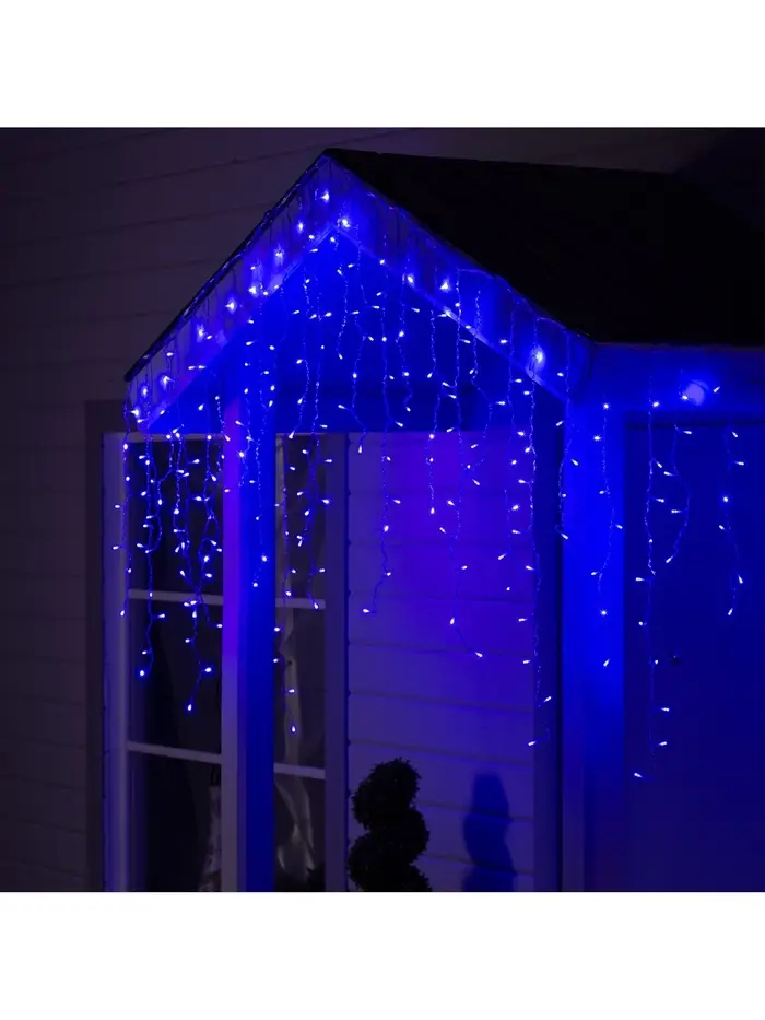 Гирлянда «Бахрома» 3×0.9 м, IP44, УМС, прозрачная нить, 232 LED, свечение синее, 220 В