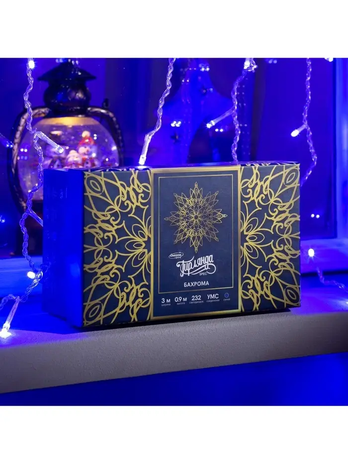 Гирлянда «Бахрома» 3×0.6 м, IP44, УМС, тёмная нить, 160 LED, свечение бело-синее, мигание, 220 В