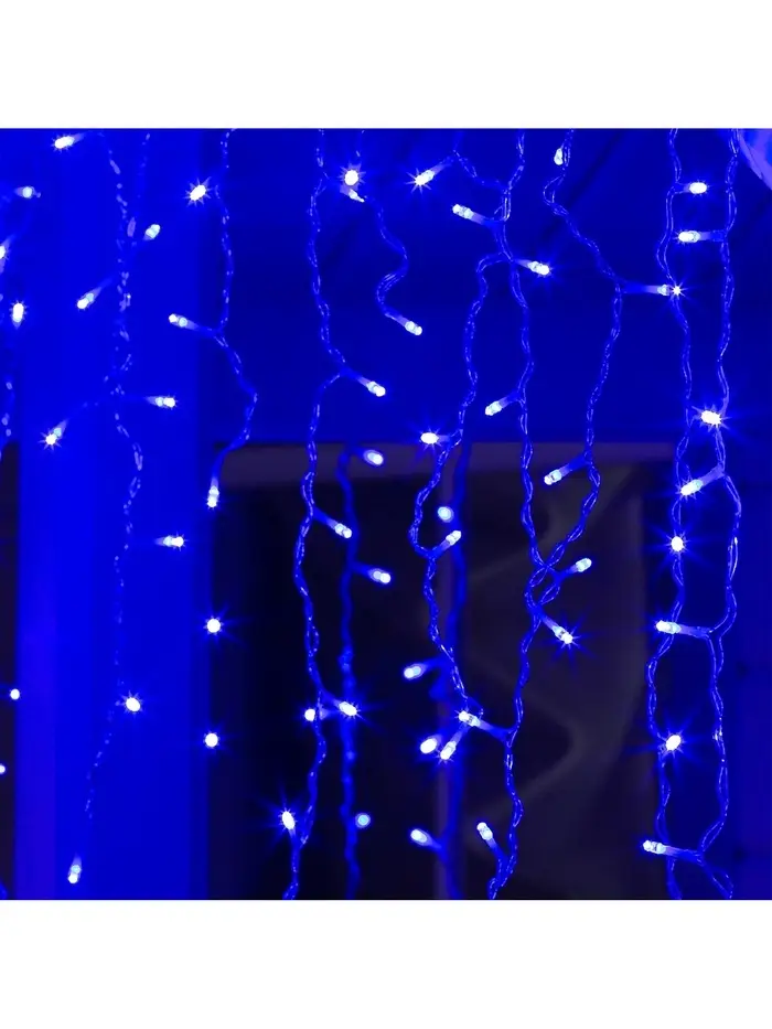Гирлянда «Бахрома» 3×0.6 м, IP44, УМС, прозрачная нить, 160 LED, свечение синее, мерцание белым, 220 В