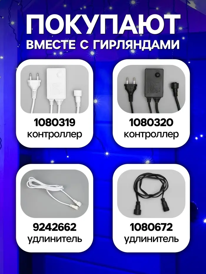 Гирлянда «Бахрома» 3×0.9 м, IP44, УМС, тёмная нить, 232 LED, свечение синее, 220 В