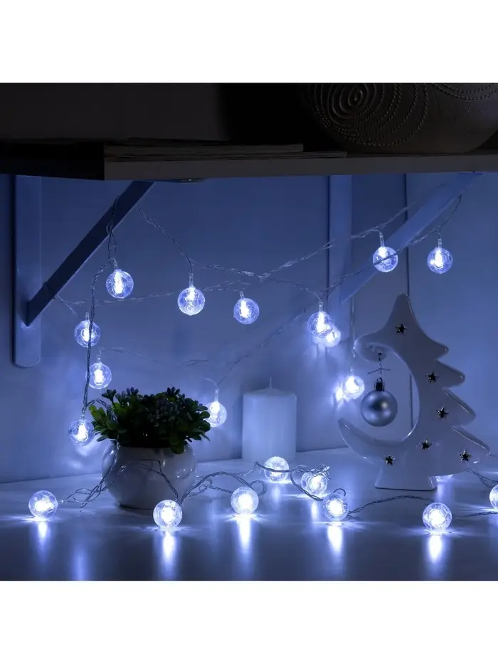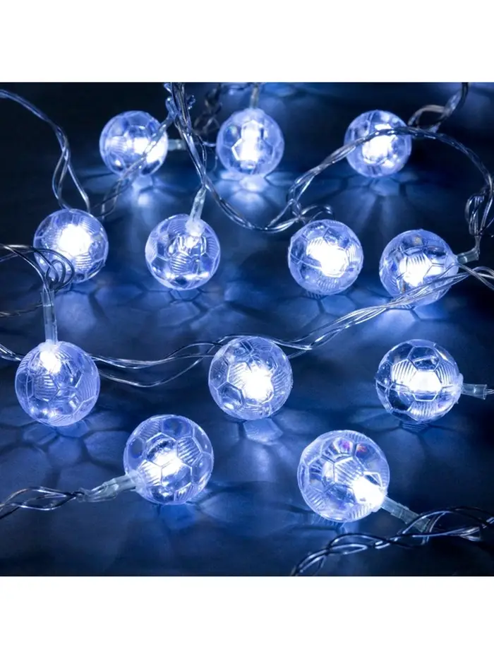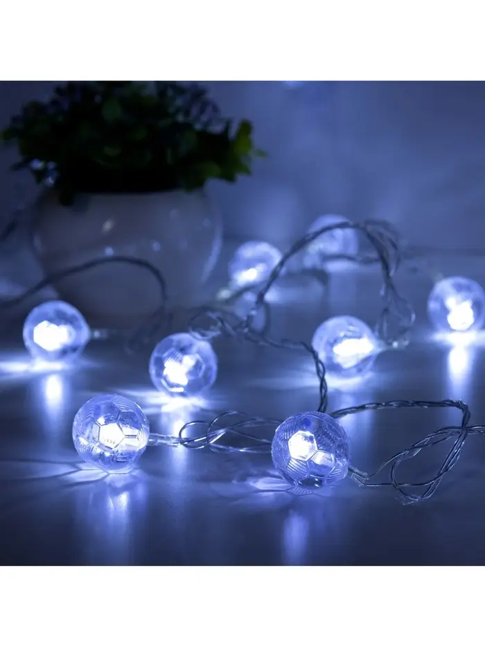 Гирлянда «Нить» 5 м с насадками «Футбольный мяч», IP20, прозрачная нить, 20 LED, свечение белое, 8 режимов, 220 В