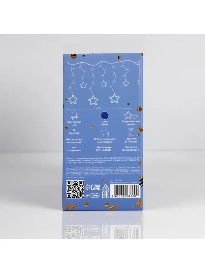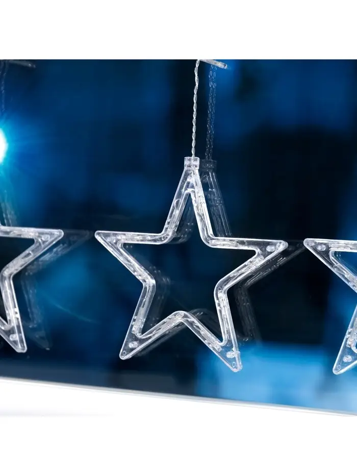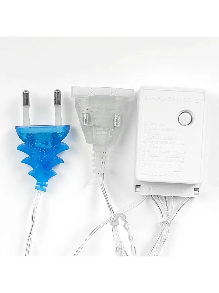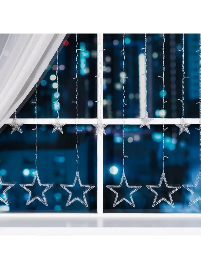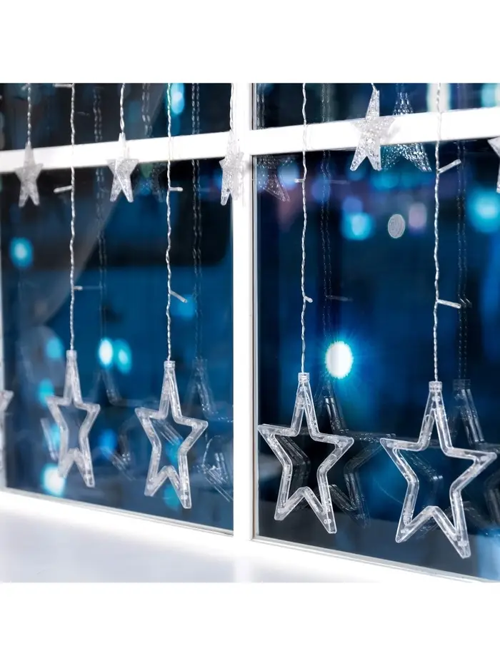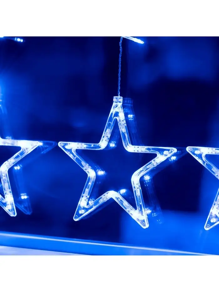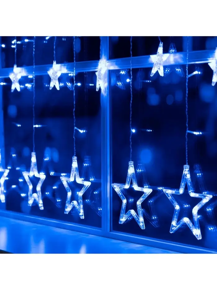 Гирлянда «Бахрома» 2.4×0.9 м с насадками «Звёзды», IP20, прозрачная нить, 138 LED, свечение синее, 8 режимов, 220 В