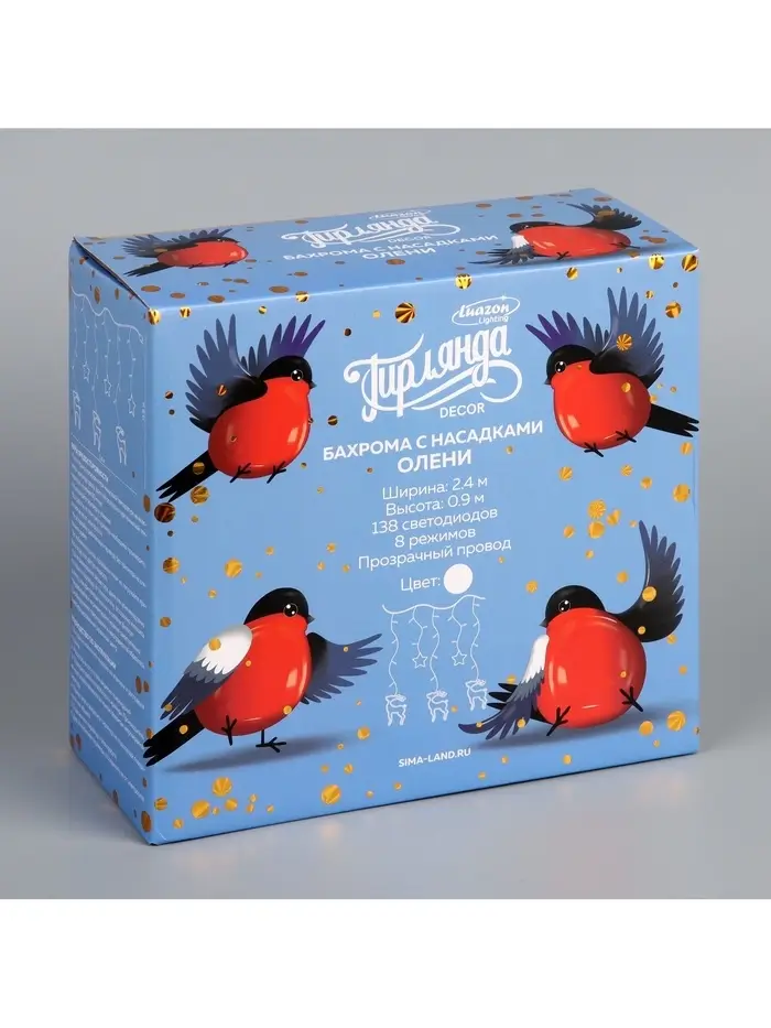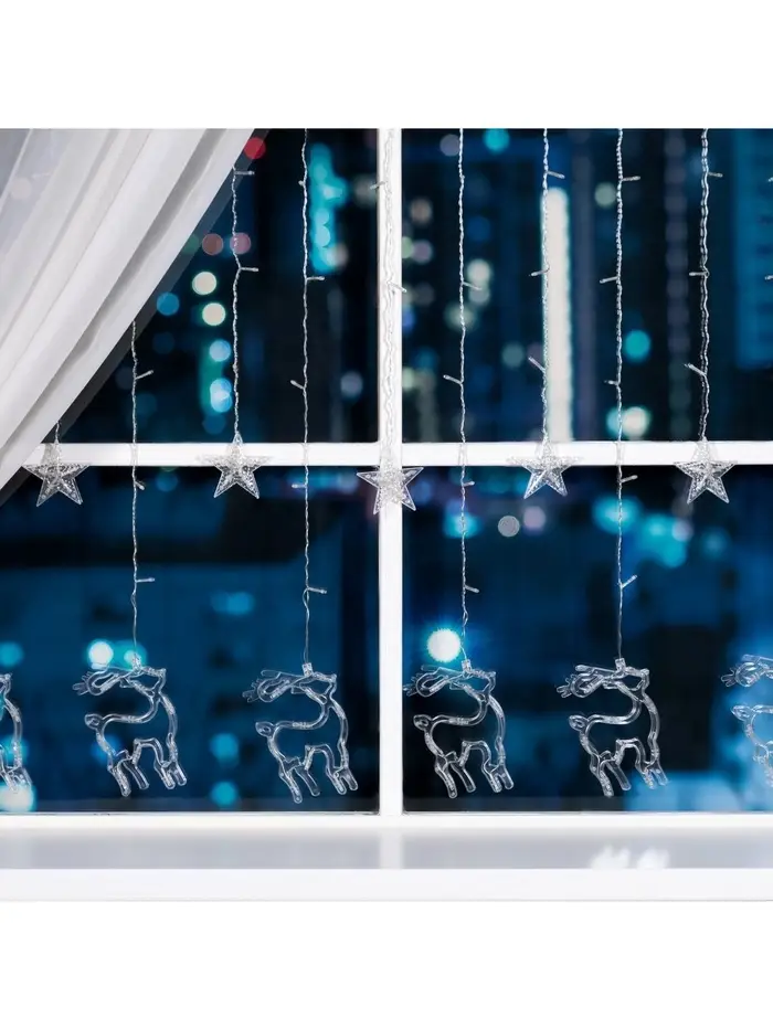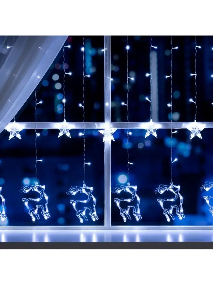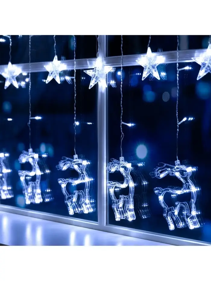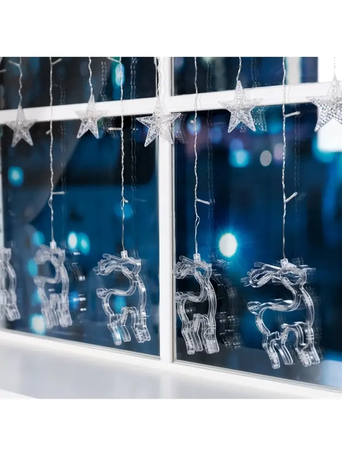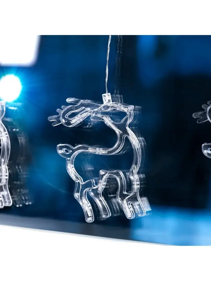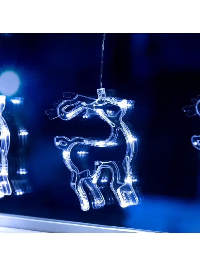 Гирлянда «Бахрома» 2.4×0.9 м с насадками «Олень», IP20, прозрачная нить, 138 LED, свечение белое, 8 режимов, 220 В