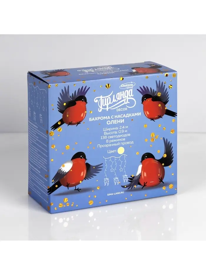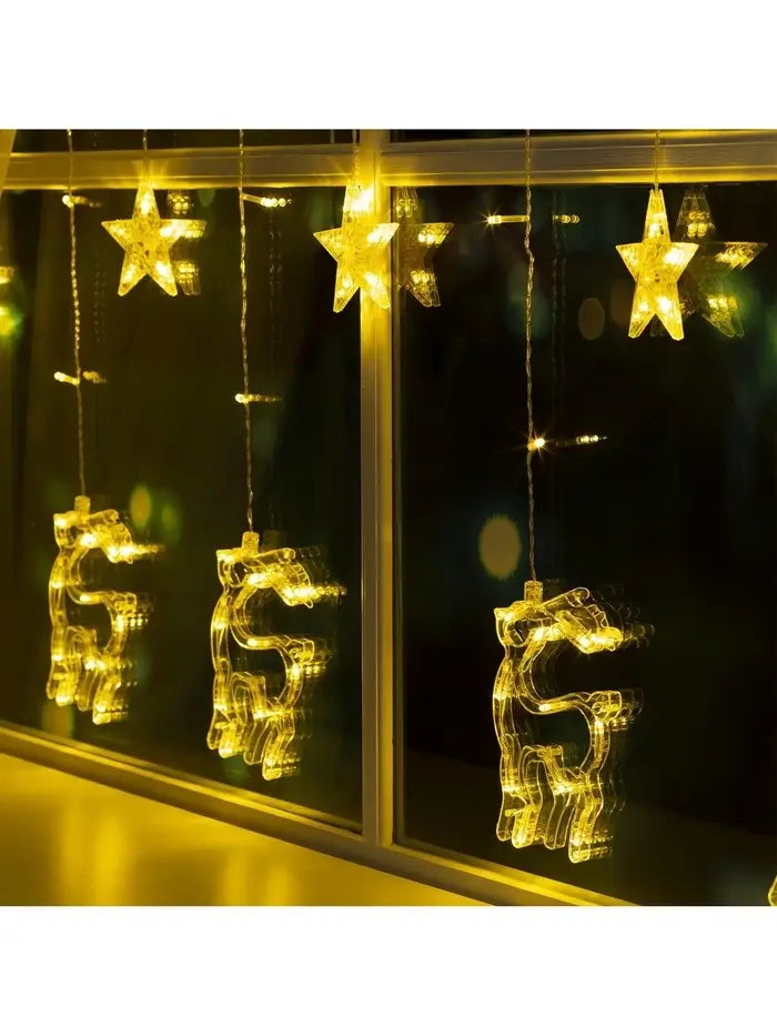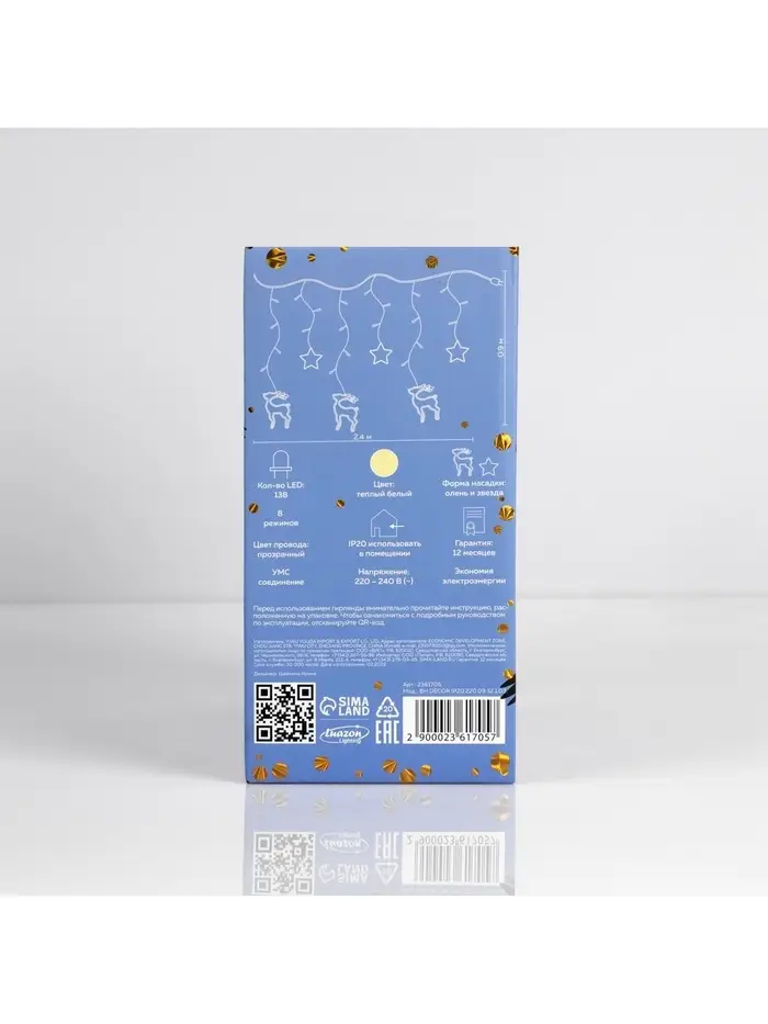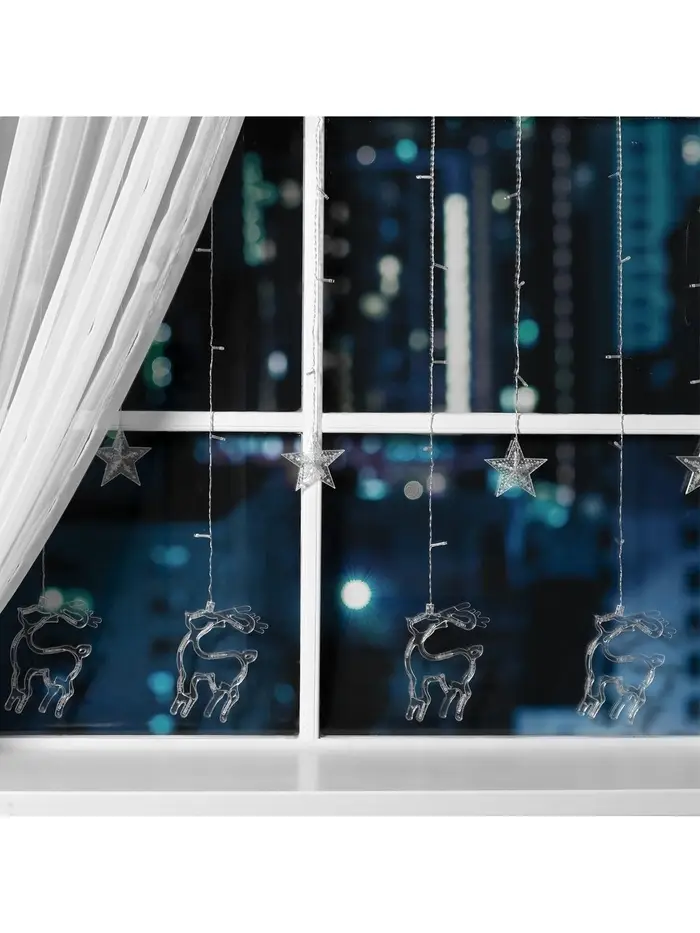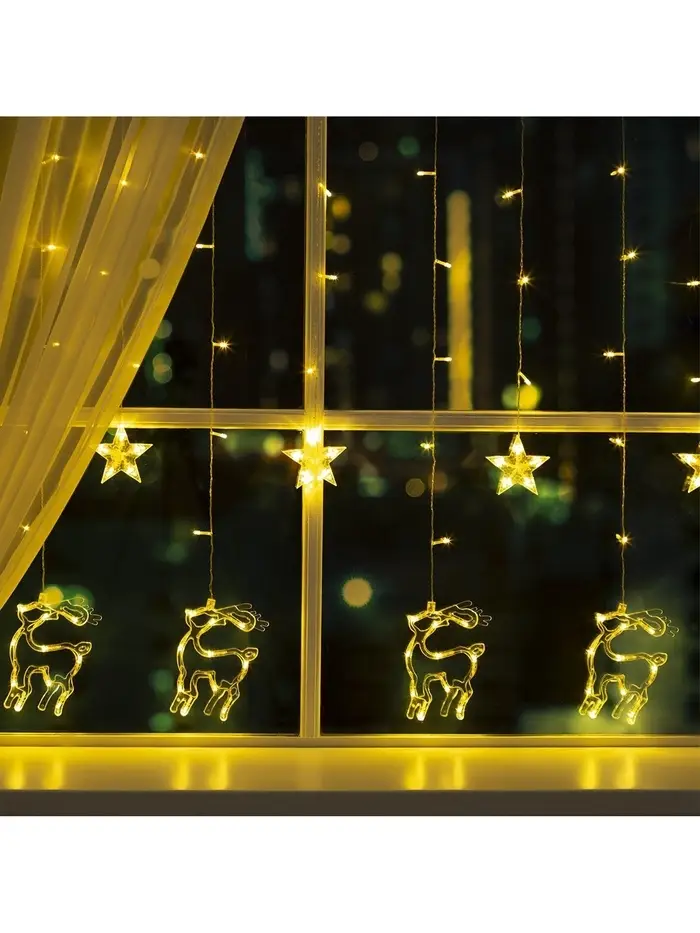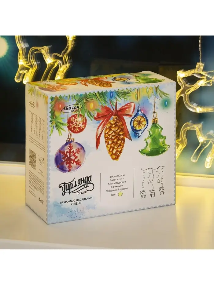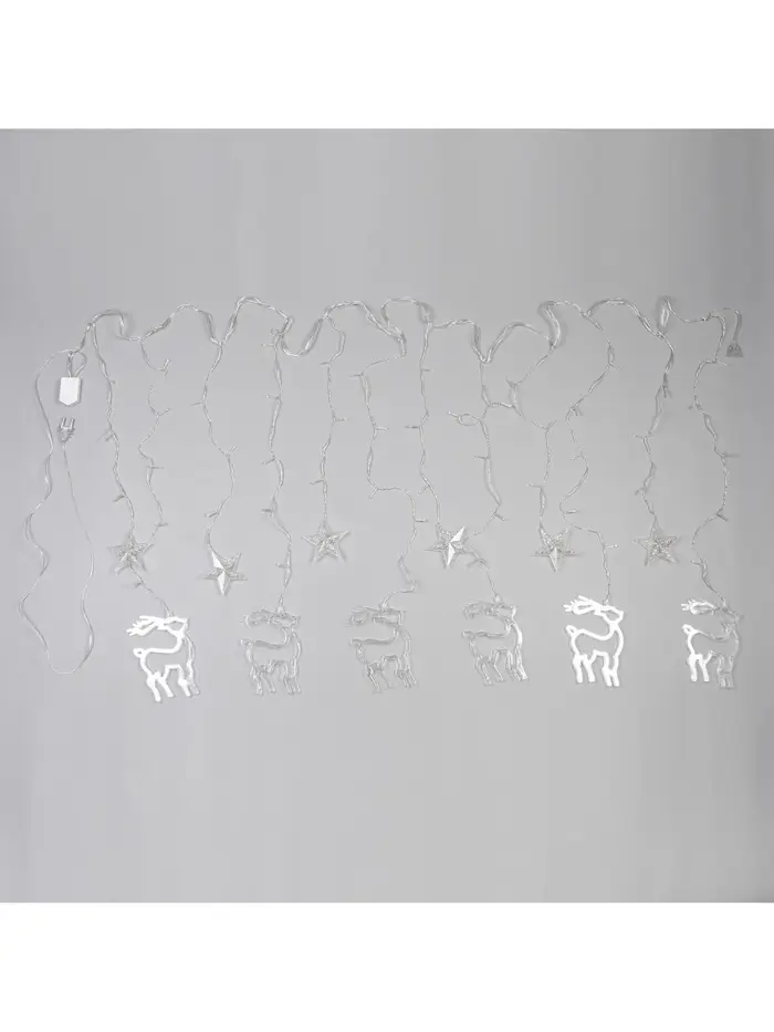 Гирлянда «Бахрома» 2.4×0.9 м с насадками «Олень», IP20, прозрачная нить, 138 LED, свечение тёплое белое, 8 режимов, 220 В