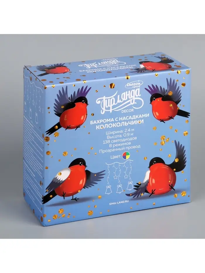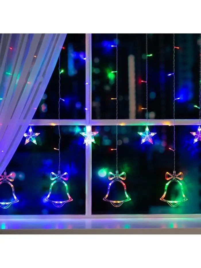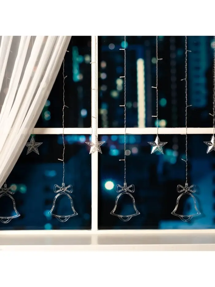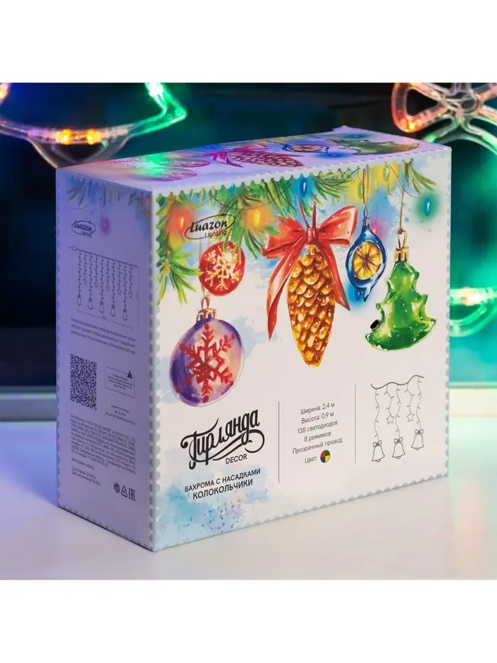 Гирлянда «Бахрома» 2.4×0.9 м с насадками «Колокольчики», IP20, прозрачная нить, 138 LED, свечение мульти, 8 режимов, 220 В