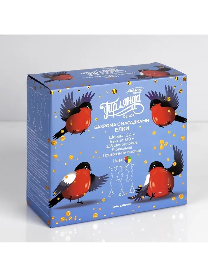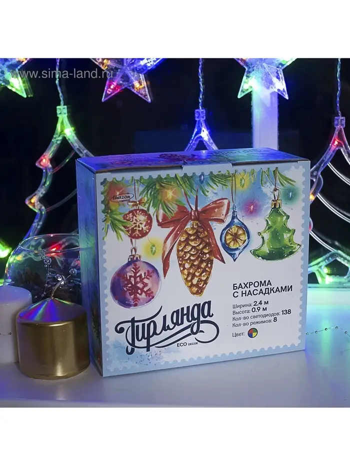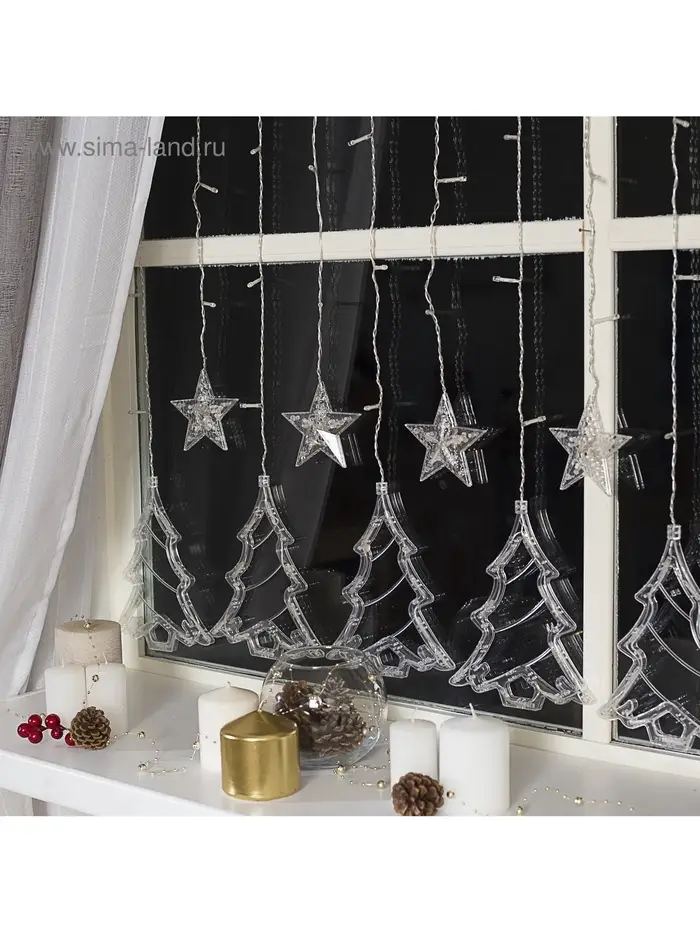 Гирлянда «Бахрома» 2.4×0.9 м с насадками «Ёлки», IP20, прозрачная нить, 138 LED, свечение мульти, 8 режимов, 220 В