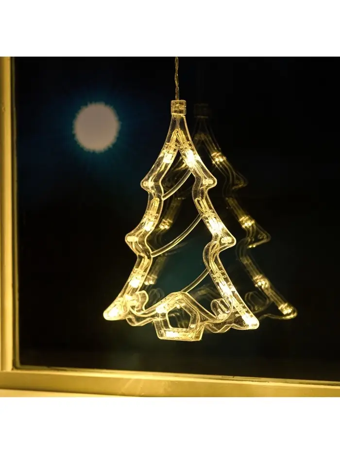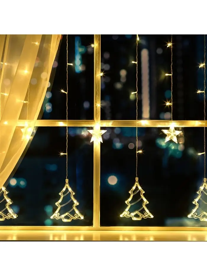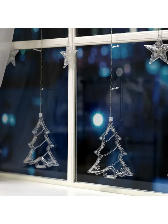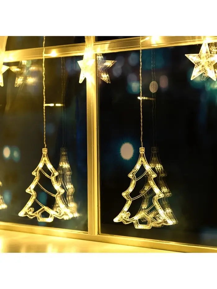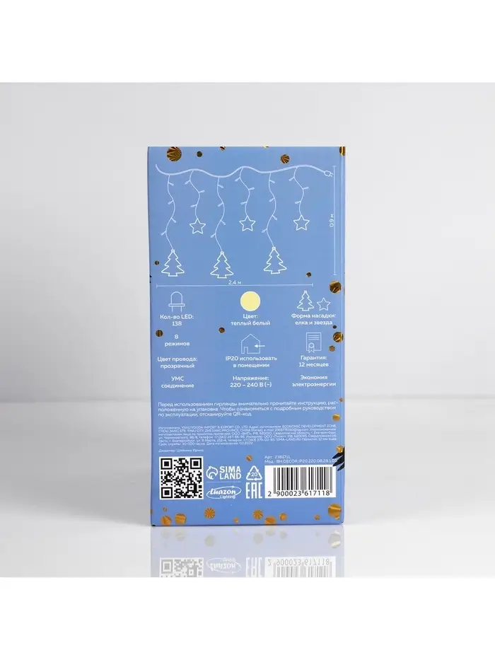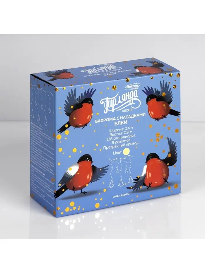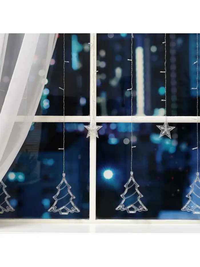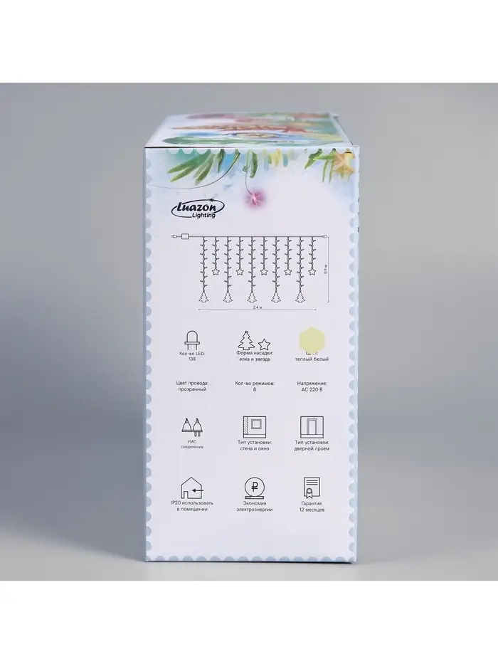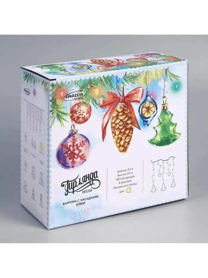Гирлянда «Бахрома» 2.4×0.9 м с насадками «Ёлки», IP20, прозрачная нить, 138 LED, свечение тёплое белое, 8 режимов, 220 В