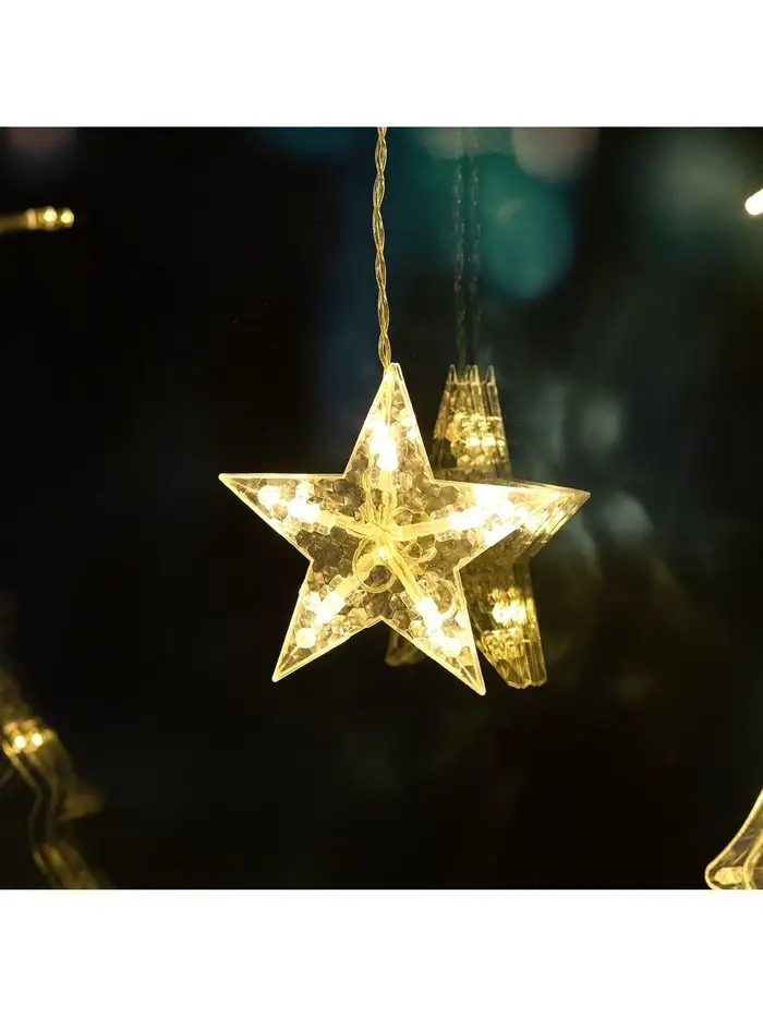 Гирлянда «Нить» 5 м с насадками «Звезда средняя», IP20, прозрачная нить, 20 LED, свечение мульти (RG/RB), мигание, 220 В
