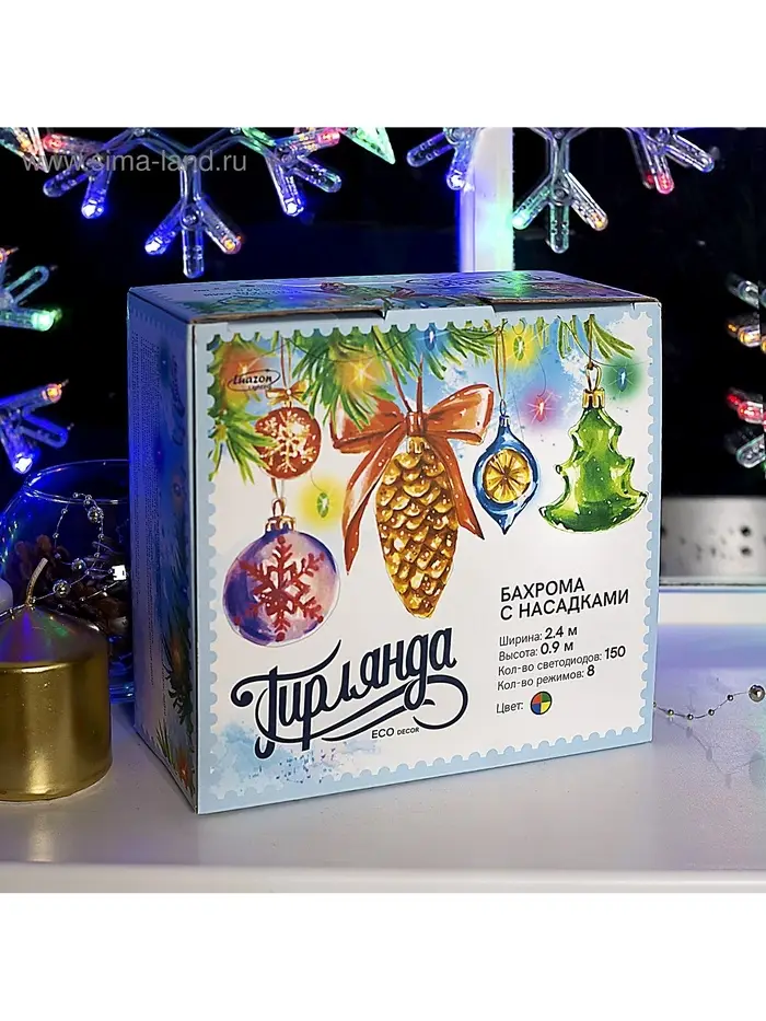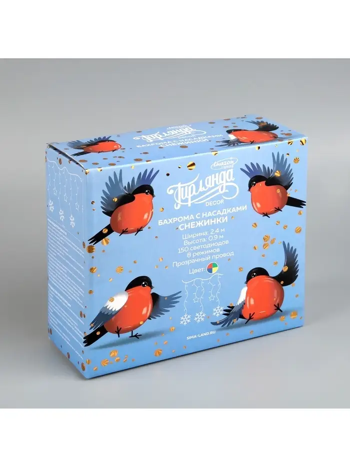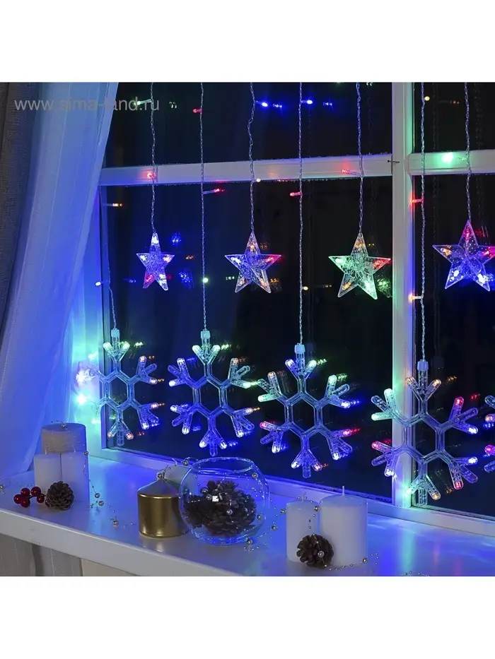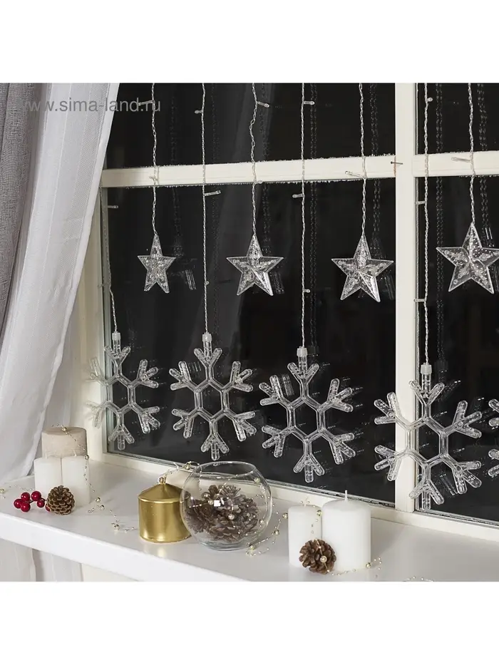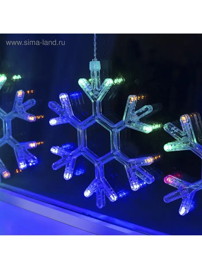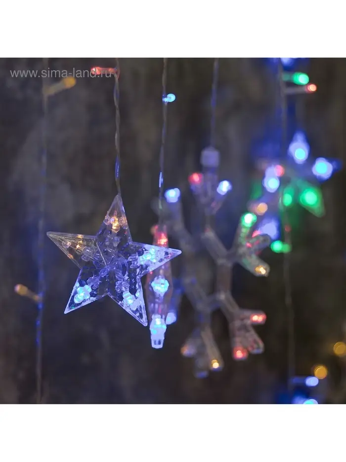 Гирлянда «Бахрома» 2.4×0.9 м с насадками «Снежинки», IP20, прозрачная нить, 150 LED, свечение мульти, 8 режимов, 220 В