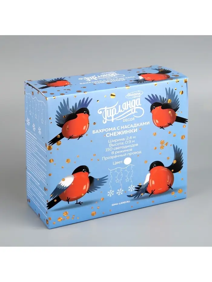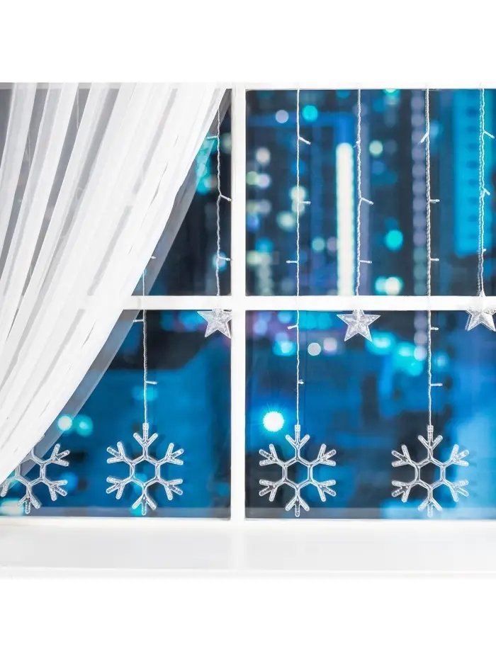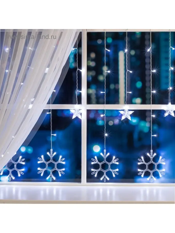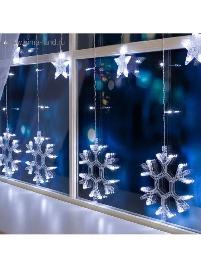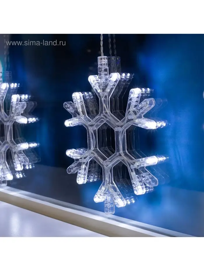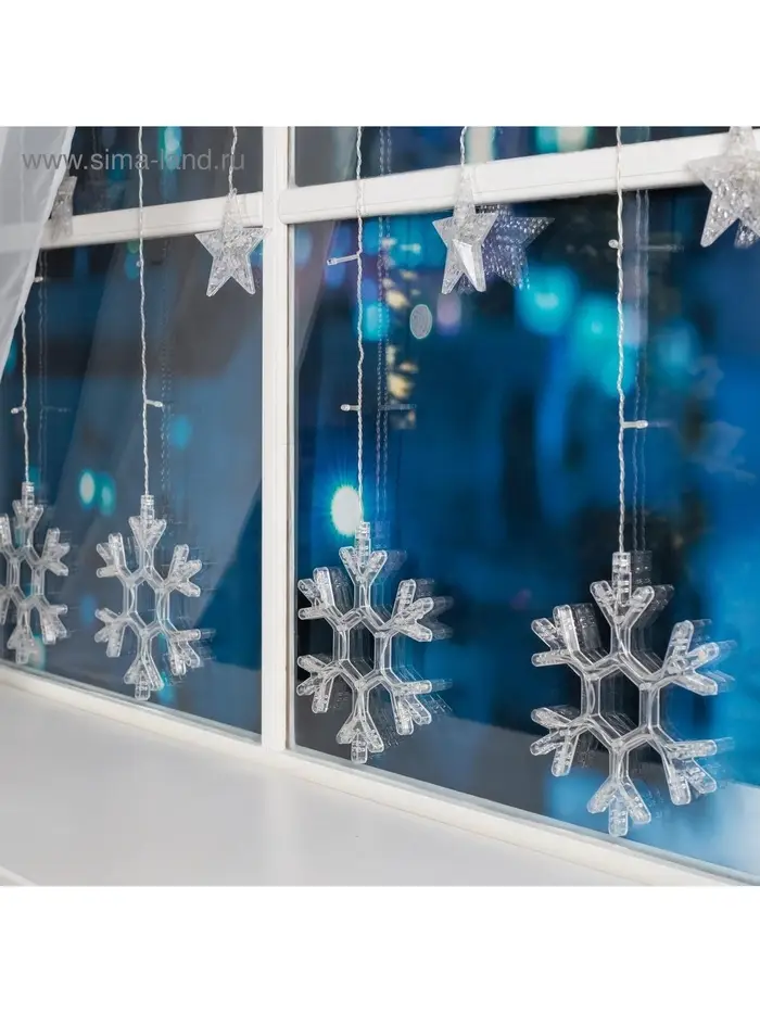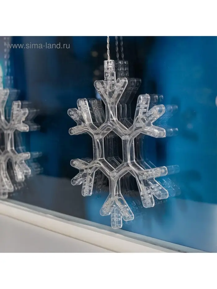 Гирлянда «Бахрома» 2.4×0.9 м с насадками «Снежинки», IP20, прозрачная нить, 150 LED, свечение белое, 8 режимов, 220 В