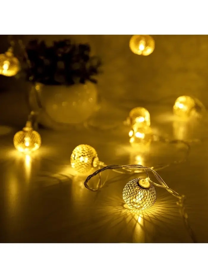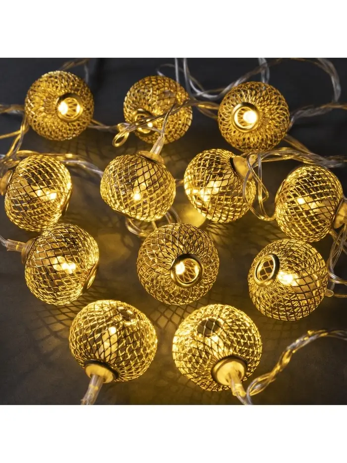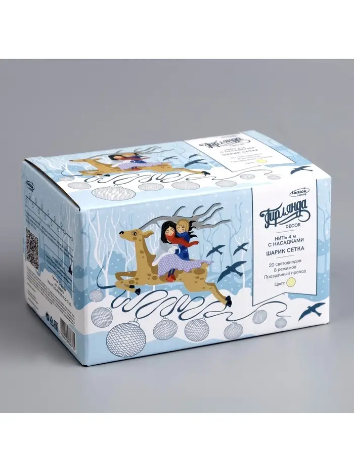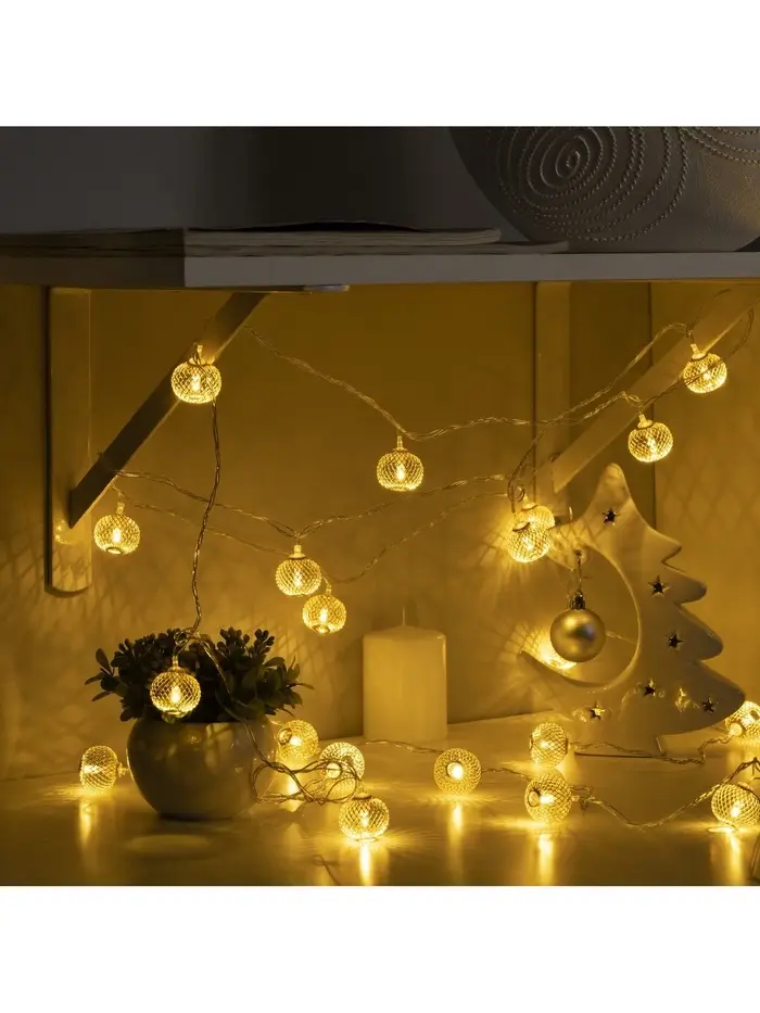 Гирлянда «Нить» 4 м с насадками «Шарик сетка», IP20, прозрачная нить, 20 LED, свечение тёплое белое, 8 режимов, 220 В