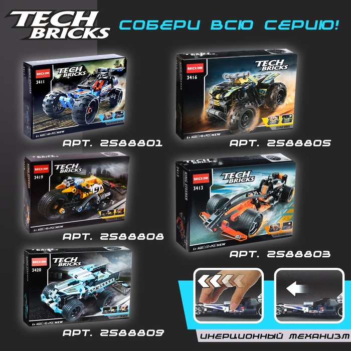 Конструктор с инерционным механизмом «Трюковый джип», 142 детали