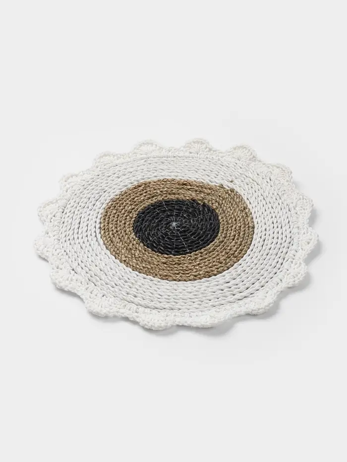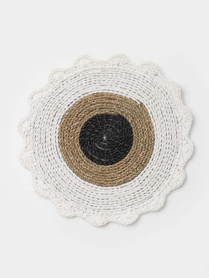 - Универсальный дизайн и форма: Классический круг диаметром 35 см подходит для большинства тарелок — от обеденных до десертных. Сдержанная цветовая гамма (белый, бежевый, чёрный) легко интегрируется в любую концепцию — от минимализма до классики или эко-стиля.