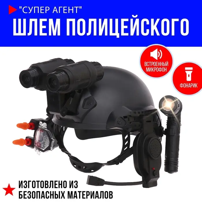 Шлем полицейского «Супер агент», световые и звуковые эффекты, работает от батареек