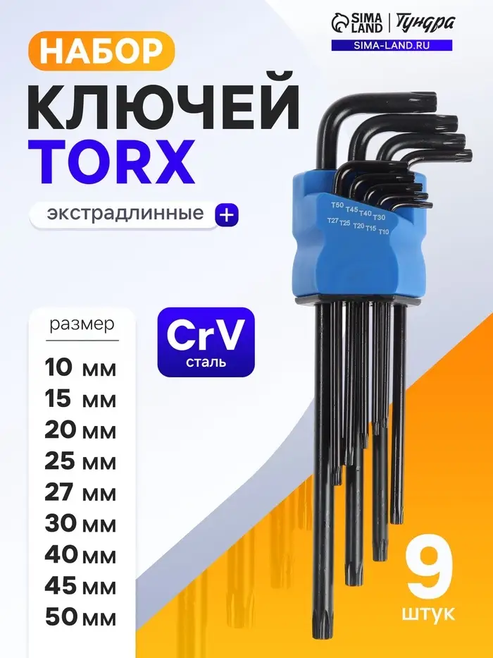 Набор ключей ТУНДРА black, TORX Tamper, экстрадлинные, CrV, TT10 - TT50, 9 шт.