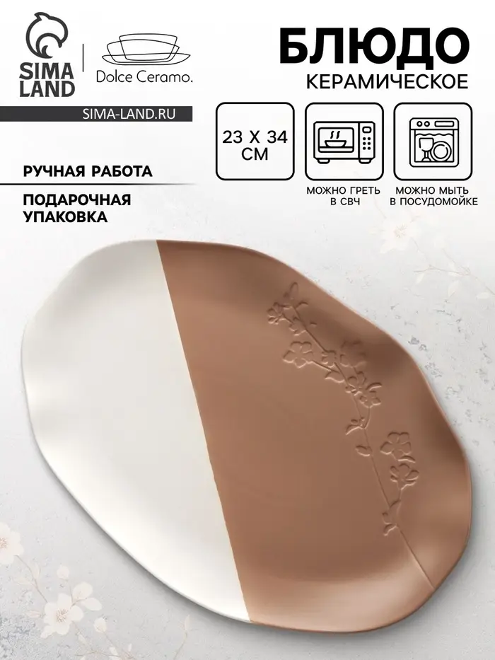 Блюдо керамическое «Монблан», 23×34 см, ручная работа