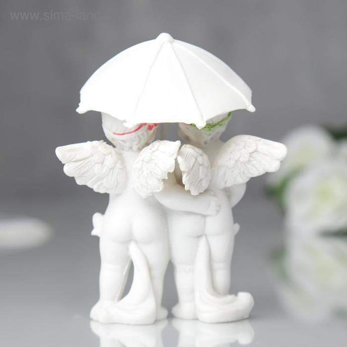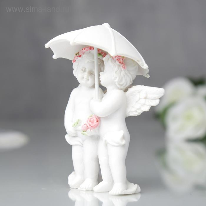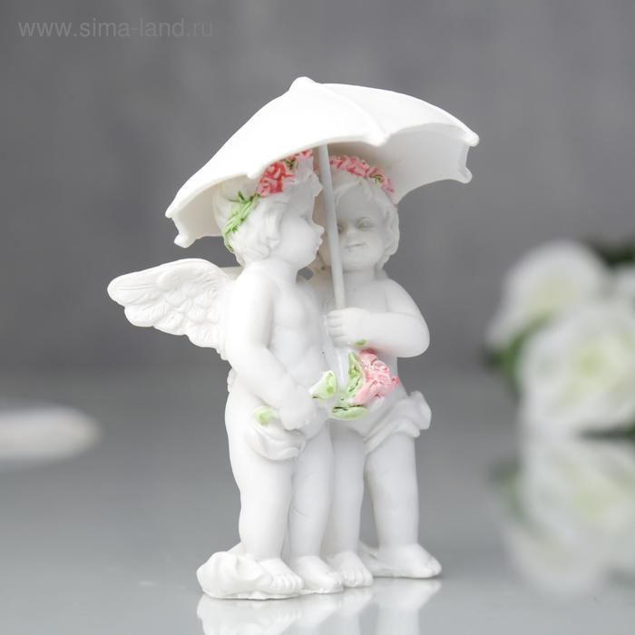 Сувенир полистоун "Ангелочки под зонтиком в розовых веночках" 8,5х6,7х6,5 см