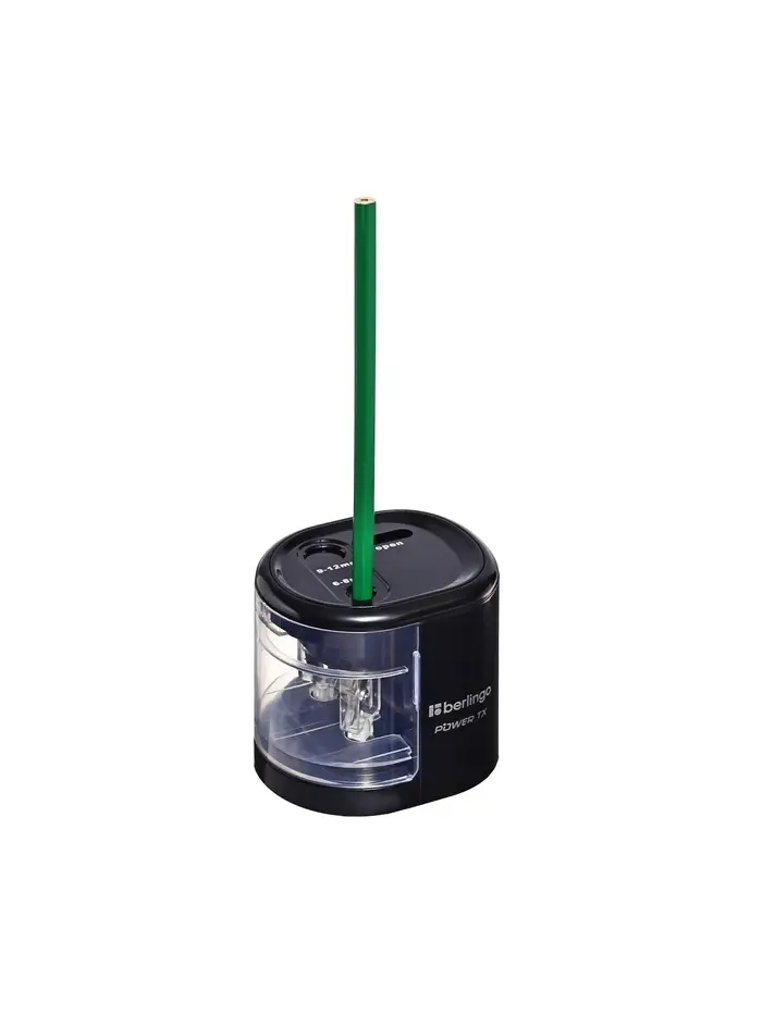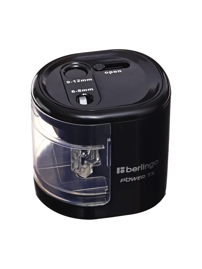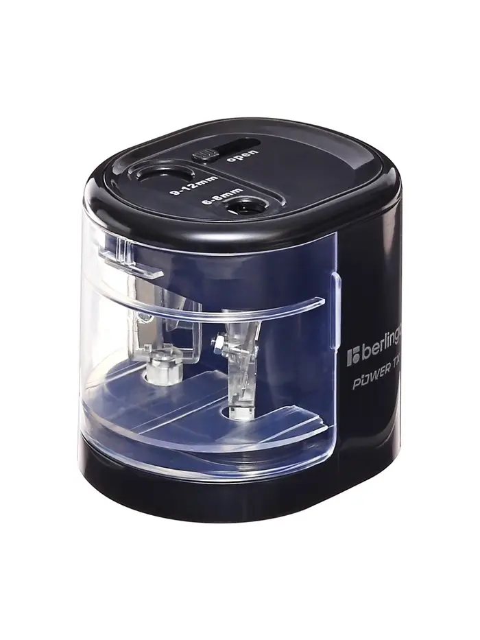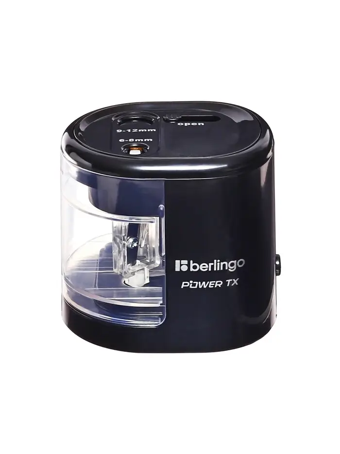 Точилка электрическая Berlingo Power TX, 2 отверстия, с контейнером, чёрная