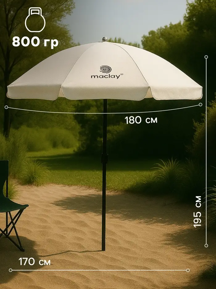 Зонт пляжный maclay, с УФ-защитой, d=180 см, h=195 см