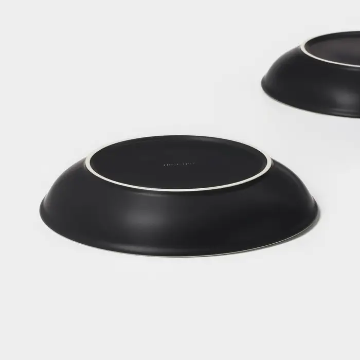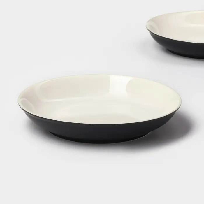 Тарелки Magistro Matt black, 950 мл, 23.5×4 см, набор 2 шт., фарфор, белые, чёрные