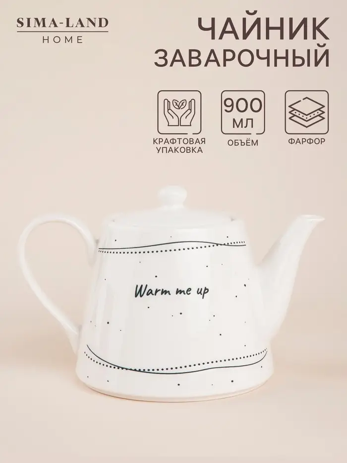 Заварочный чайник SL Home «Милый дом», 900 мл, 21×13.8×13.5 см, фарфор, белый