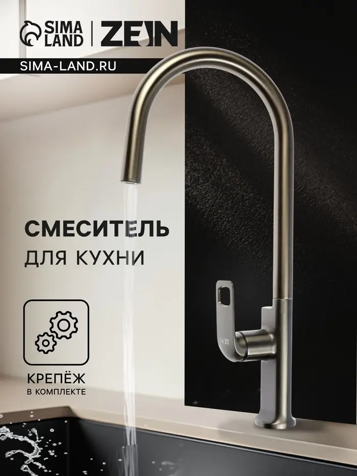 Смеситель для кухни ZEIN, квадратный, картридж 35 мм, нержавеющая сталь, сатин