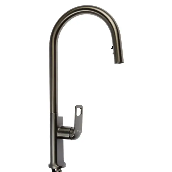 Смеситель для кухни ZEIN Z3785, однорычажный, вытяжной излив, аэратор 2 режима, графит